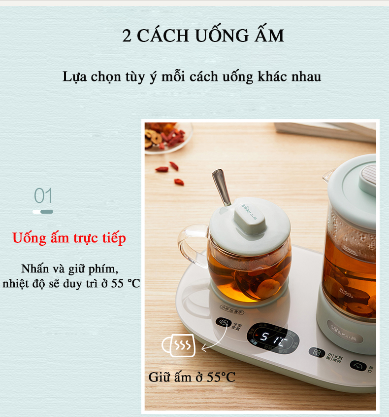 Ấm đun: giữ nhiệt ở 55 độ C