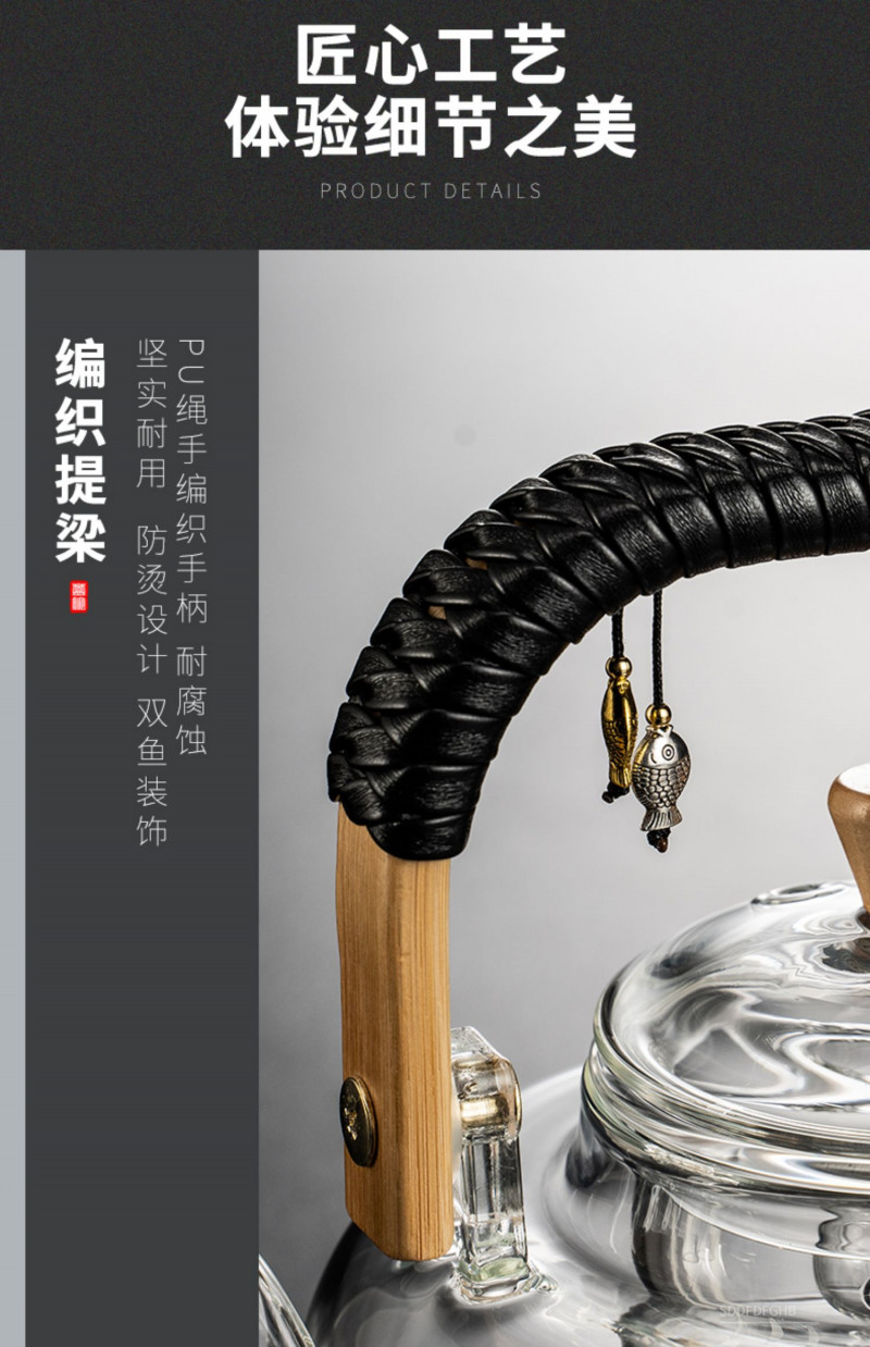 Điểm nhấn của sản phẩm chính là phần tay cầm và nắp được làm bằng gỗ tự nhiên, tạo ra sự đối lập với thủy tinh và tăng thêm tính thẩm mỹ cho sản phẩm. Ấm trà ATD có dung tích 900ml đủ để pha 4 tách trà. Phần nắp của ấm trà được thiết kế vừa khít với thân ấm, giúp giữ nhiệt và ngăn độc tố bên ngoài xâm nhập vào nước trà. Trên Aone Market có hai loại ấm trà để bạn lựa chọn gồm loại quay đen và quay vàng, cụ thể: