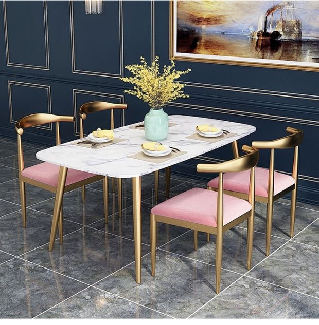 Mẫu bàn ăn mặt đá cẩm thạch phù hợp cho 4-8 người tuỳ kích thước mà bạn lựa chọn. Sản phẩm sẽ tạo điểm nhấn nhất định cho không gian, toát lên vẻ đẹp hiện đại và sang trọng cho toàn bộ căn phòng. Bạn có thể kết hợp trang trí một lọ hoa đặt trên bàn ăn trông sẽ đẹp mắt hơn rất nhiều.