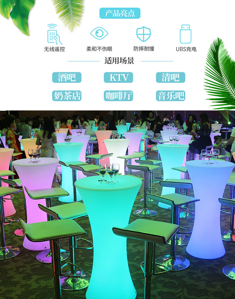 Bàn ghế dạ quang nổi bật thích hợp đặt tại các quán bar, bữa tiệc ngoài trời