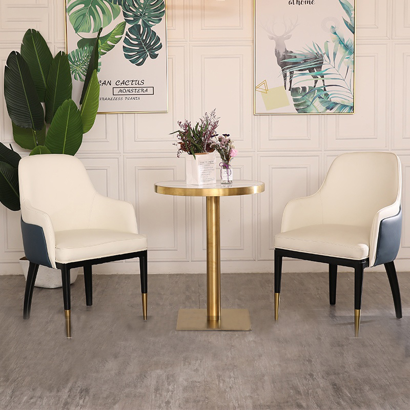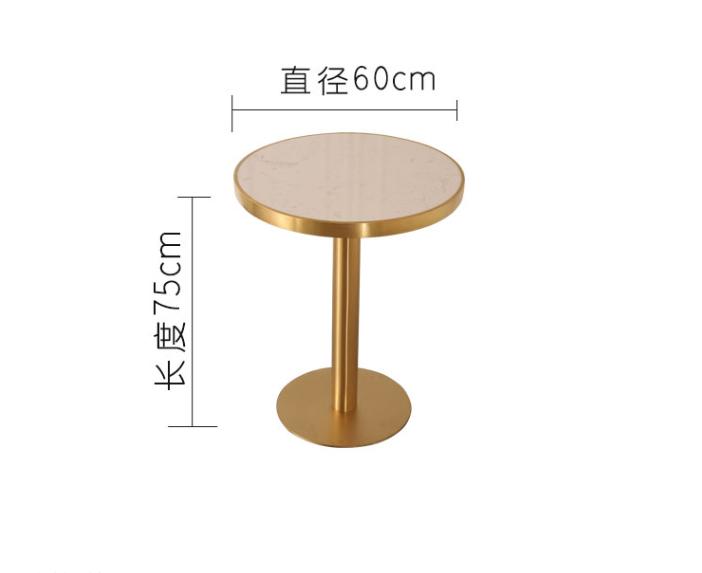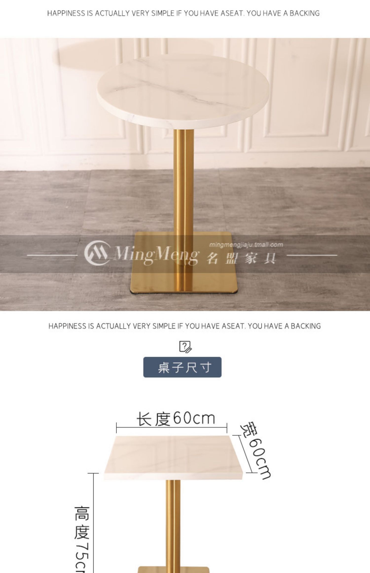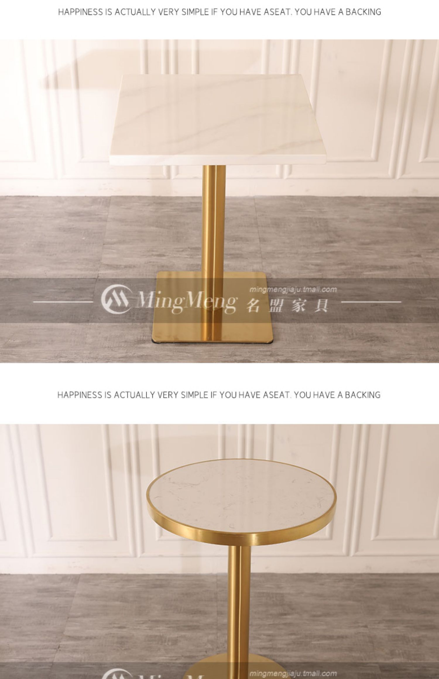 Bàn được thiết kế theo phong cách tối giản, điểm nhấn là phần đế được phủ một lớp màu vàng. Kết hợp cùng với mặt bàn đá mịn, sáng bóng được mài dũa tỉ mỉ các phần góc cạnh.