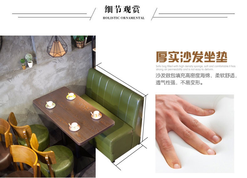 Ghế có 2 loại là ghế đơn và sofa. Khách hàng có thể lựa chọn màu nâu hoặc xanh để sử dụng. Phần tựa lưng là gỗ tấm uốn cong màu nâu sáng, được bào cẩn thận và phủ sơn chống thấm. Thiết kế này mang lại cảm giác thoải mái, nâng đỡ lưng người ngồi.