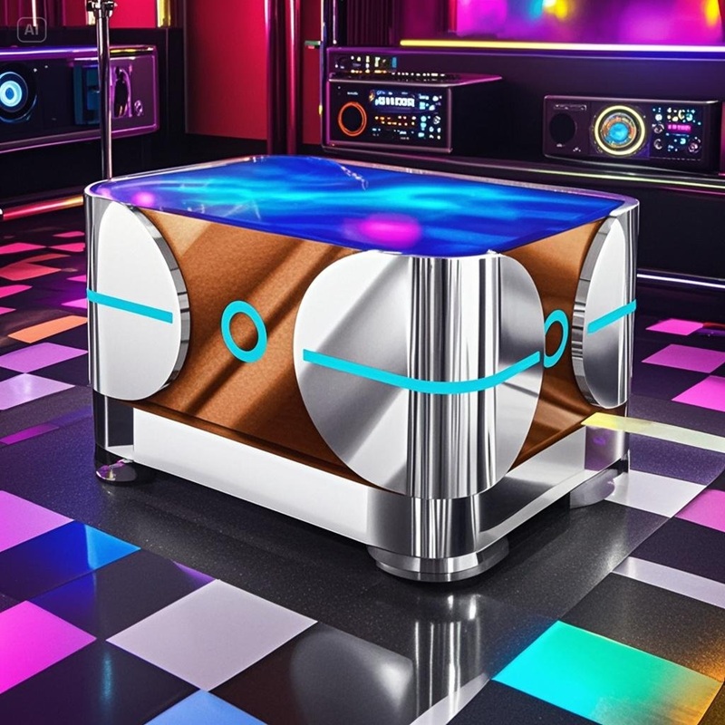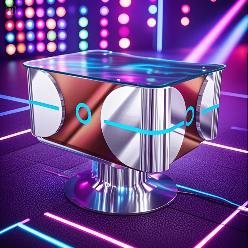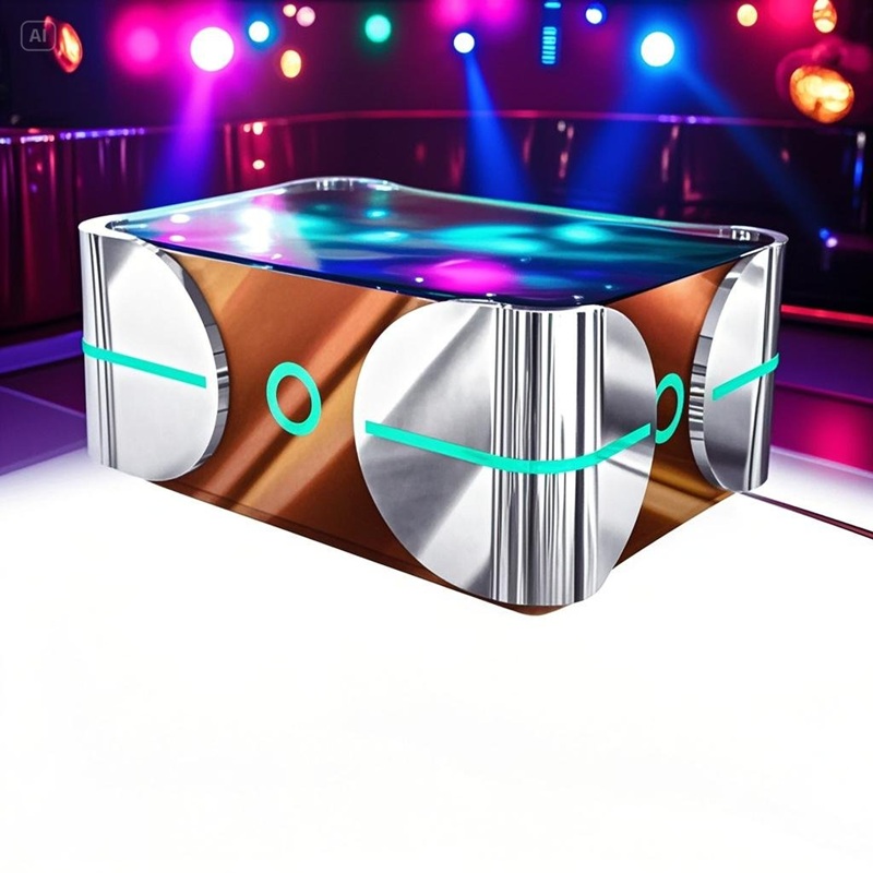 Bàn Karaoke Inox MS041 mang phong cách futuristic với khối vuông bo tròn độc đáo, tạo nên một điểm nhấn hoàn toàn mới lạ cho không gian karaoke, lounge hay bar. Sự kết hợp giữa inox bóng gương, mặt kính cường lực, cùng đường LED xanh dạ quang nổi bật giúp chiếc bàn vừa sang trọng vừa đầy cuốn hút.