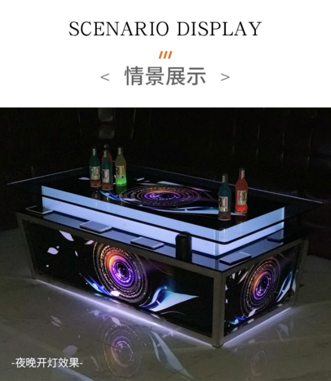 Thiết bị đèn LED được lắp đặt bên trong, giúp cho bàn karaoke kính cường lực BKK có thể thay đổi màu sắc tùy theo sở thích người dùng. Với hiệu ứng này đã tạo nên cảm giác mới lạ, sinh động hơn cho căn phòng karaoke nhà bạn.