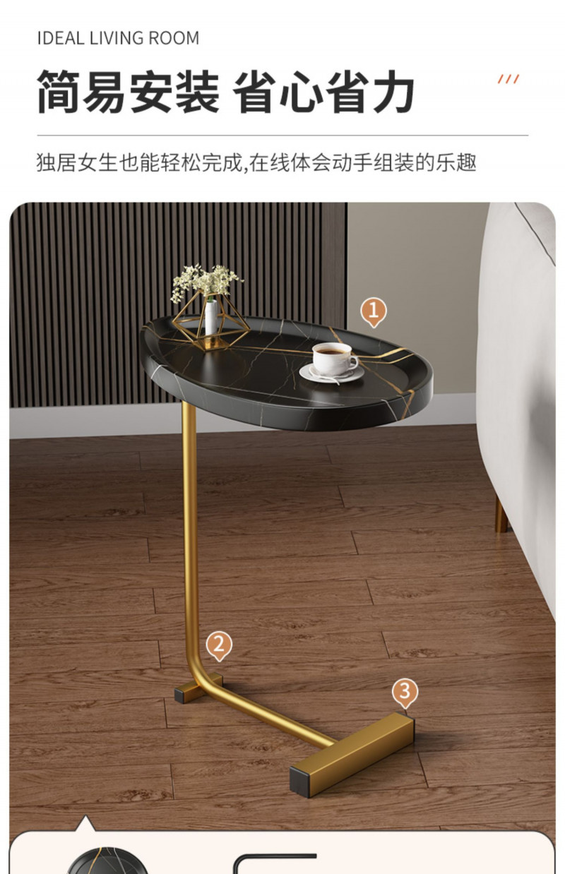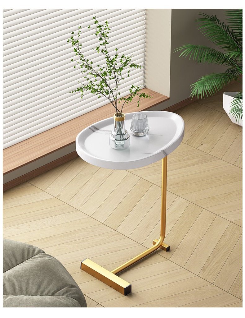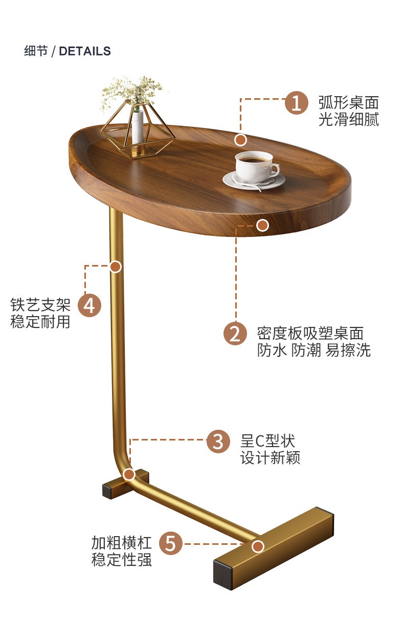 Bàn trà di động BTDD sử dụng chất liệu gỗ/đá hoa cương kết hợp với kim loại được mạ lớp sơn tĩnh điện nên vừa bền vừa thẩm mỹ. Bàn được thiết kế phá cách, độc đáo với tạo hình chữ C. Phần chân thanh mảnh với một trụ uốn lượn. Thanh ngang ở chân bàn mạnh mẽ, có thể nâng đỡ chắc chắn cho toàn bộ bàn. Mặt bàn có hai loại là gỗ và vân đá hoa cương.