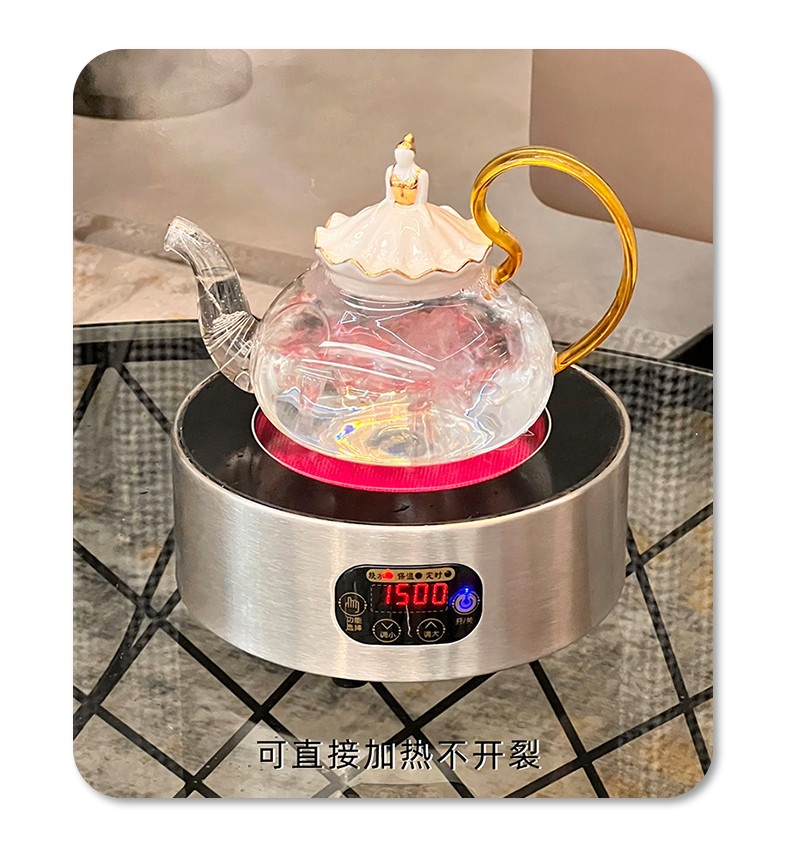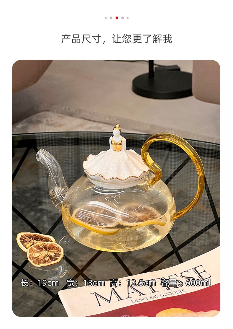 Ấm trà thuỷ tinh: dung tích 600ml; chiều dài 19cm; đường kính 13cm; chiều cao 13.5cm.