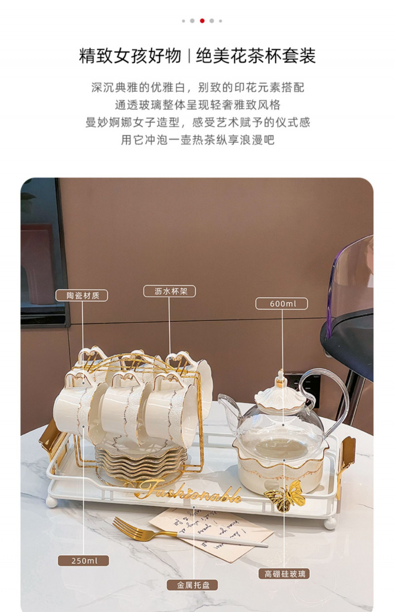 Đế gốm nung ở nhiệt độ cao nên bạn có thể đặt nến hoặc cồn bên trong, vừa hâm nóng trà lại tạo không khí ấm cúng và lãng mạn. Chén uống nước mạ vàng một số hoạ tiết làm điểm nhấn.