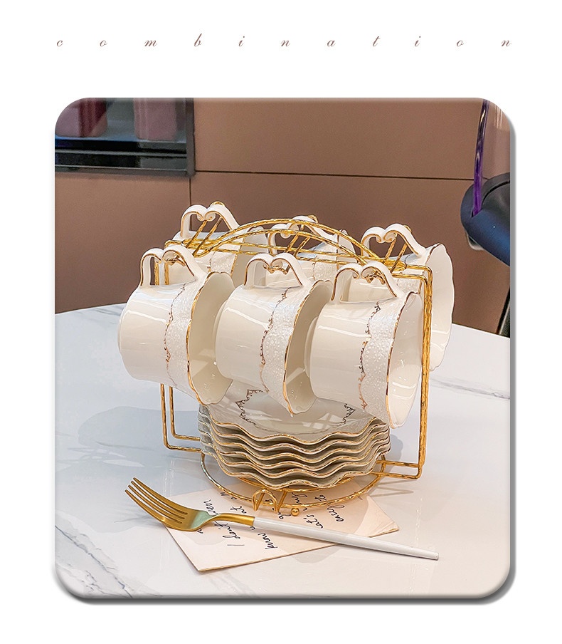 Bộ ấm trà thiên nga trắng BATT sử dụng tông màu trắng chủ đạo tinh tế và thanh lịch. Một bộ gồm: 6 chén, 6 đĩa, 1 khay, 1 giá đỡ, 1 ấm trà và 1 bếp gốm. Gốm sứ được nung trên nền nhiệt độ cao nên kết cấu bền, bề mặt men nhẵn bóng và sáng, dễ dàng vệ sinh. Giá đỡ cốc sử dụng hợp kim cao cấp mạ vàng càng tôn lên sự sang trọng cho tổng thể bộ sản phẩm. Giá đỡ giúp treo những chiếc cốc gọn gàng và ngăn nắp. Đi kèm đó là 6 đĩa để đặt cốc khi uống nước.
