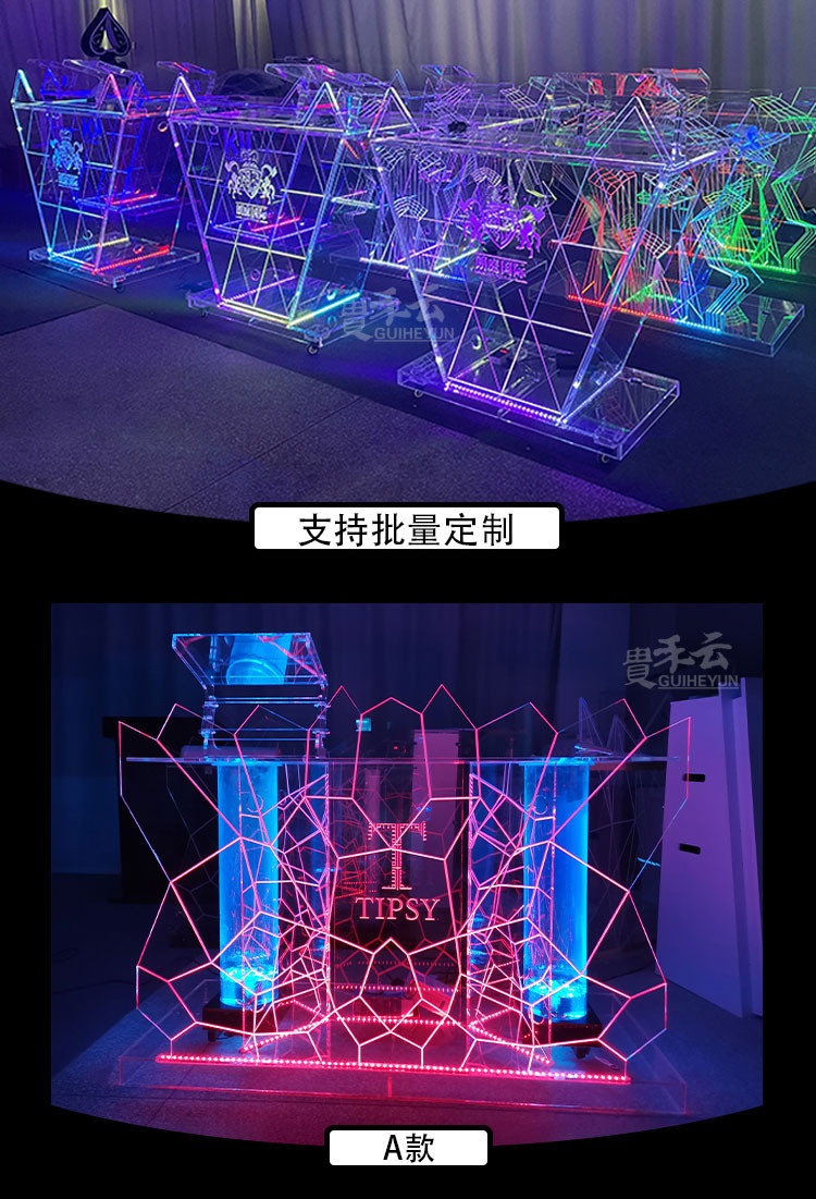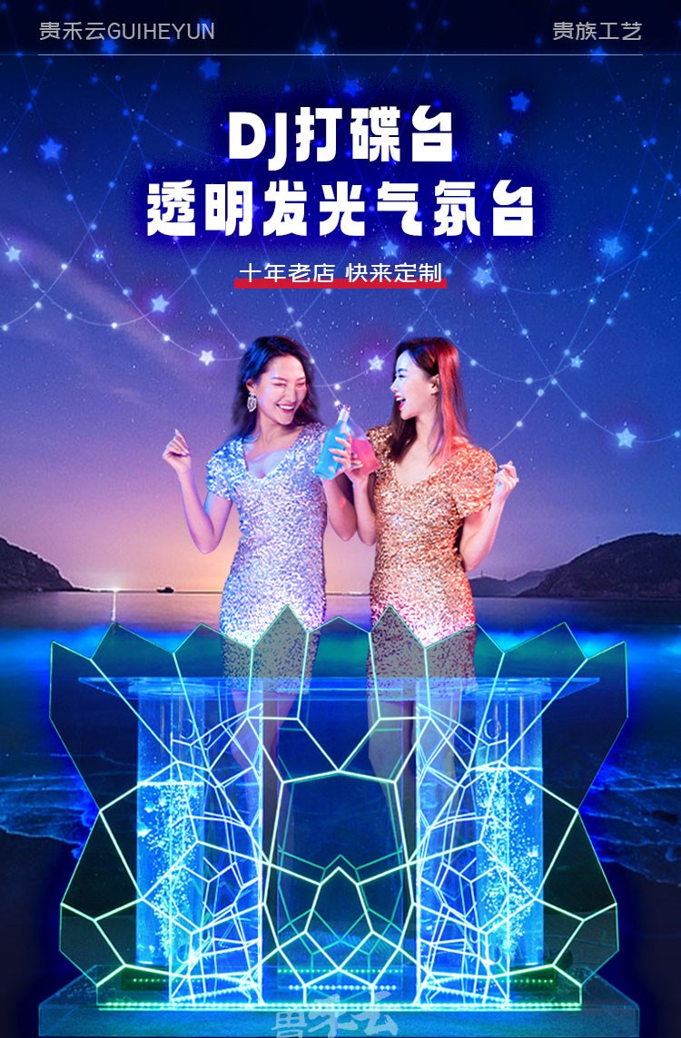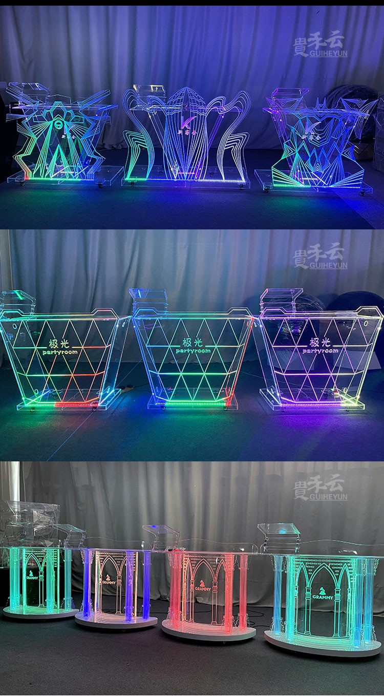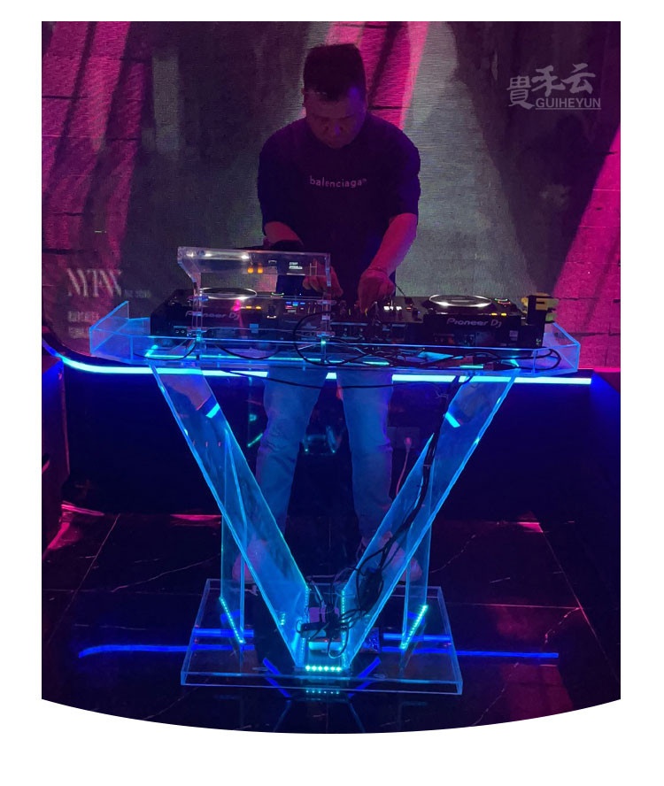 Bục DJ được làm từ chất liệu nhựa acrylic nguyên chất, kết hợp với hệ thống đèn LED tạo nên hiệu ứng sống động trong không gian. Bên cạnh đó, bạn có thể tùy chỉnh độ sáng cũng như màu sắc của đèn, tránh tình trạng gây chói lóa mắt.