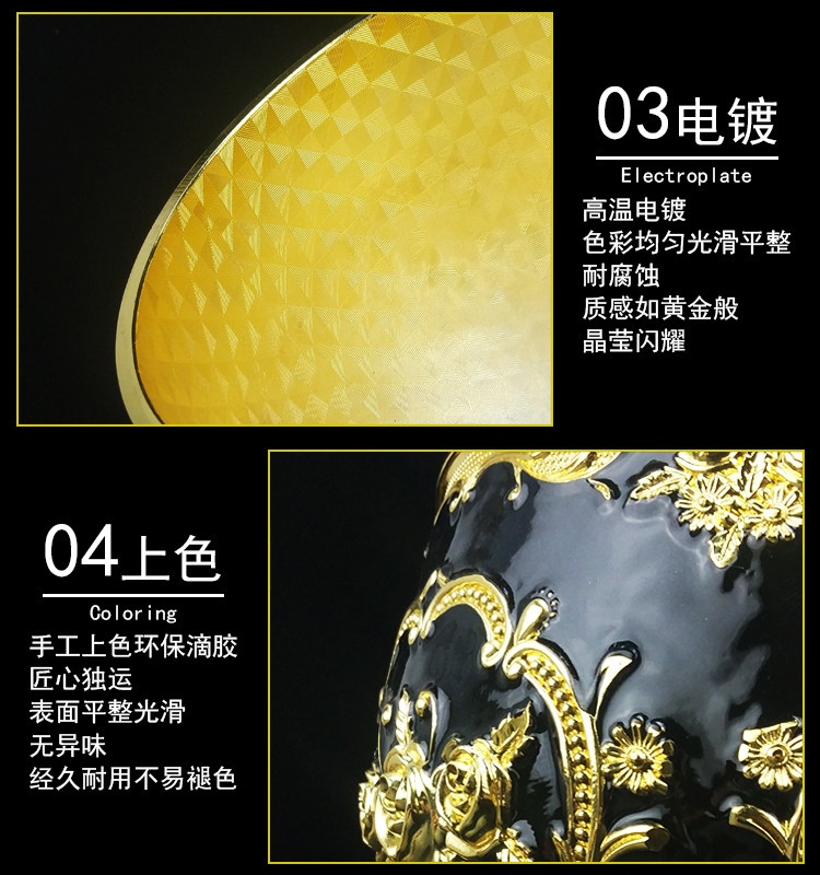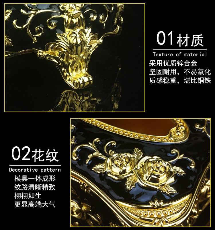 Màu chủ đạo là màu đen tuyền sang trọng, huyền bí kết hợp với màu vàng kim làm nổi bật bộ sản phẩm, tăng tính thẩm mỹ cho không gian của bạn. Bên cạnh đấy, họa tiết trang trí hình hoa hồng được đúc trong khuôn cho thành phẩm có độ sắc nét và chân thật cao.