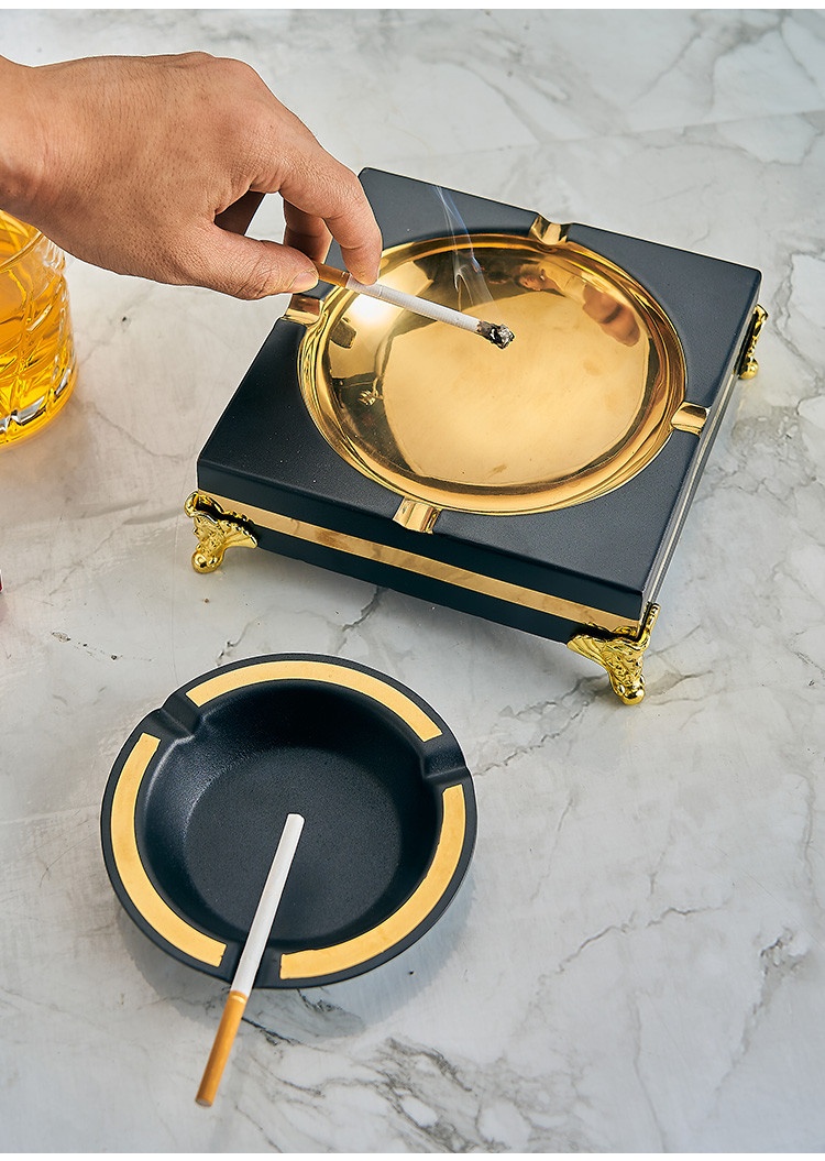Gạt tàn vuông vàng đen trơn (Dài: 15,8, rộng: 15,8cm, cao: 5,7cm)