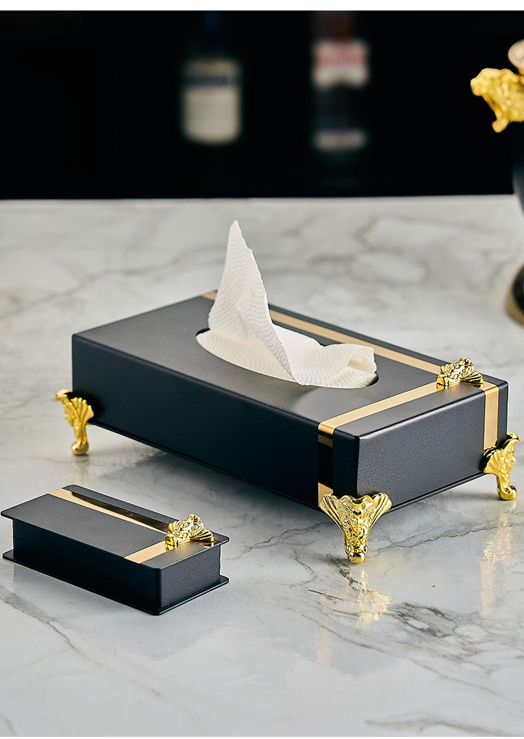 Hộp khăn giấy vàng đen trơn (Dài: 20,7cm, rộng: 11,8cm, cao: 6,5cm)