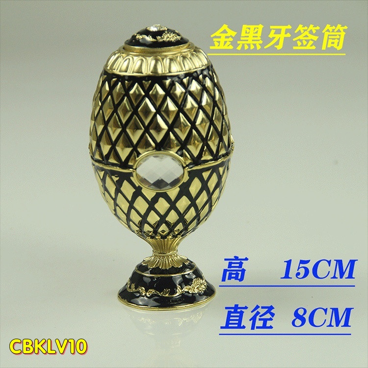 Hộp tăm vàng phối đen đính ngọc (Đường kính 8cm, cao 15cm)