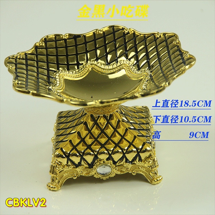 Đĩa ăn nhẹ vàng phối đen đính ngọc (Đường kính trên: 18.5cm, cao: 9cm, đường kính dưới: 10,5cm)