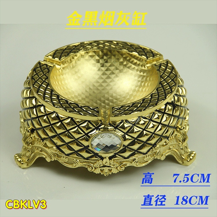 Gạt tàn tròn vàng phối đen đính ngọc (Đường kính: 18cm, cao 7,5cm)