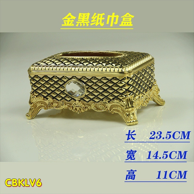 Hộp khăn giấy vàng phối đen đính ngọc (Dài: 23,5cm, rộng 14,5cm, cao: 11cm)