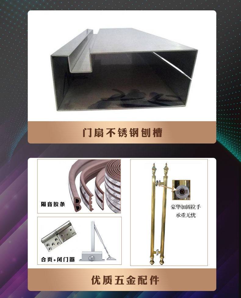 Cửa cách âm phòng karaoke CCAK được làm bằng chất liệu thép cao cấp với nhiều màu sắc cho khách hàng chọn lựa. Một bộ cửa cách âm bao gồm: khung cửa, bao cửa, tay nắm phần cứng, tay co cửa, bản lề, dải cao su, vít lắp đặt... Từng chi tiết vi mô của sản phẩm đều đạt chuẩn chất lượng. Các phụ kiện phần cứng được nhà sản xuất chú trọng như: bản lề chịu lực, tay co cửa, dải cách âm… Tay cầm được gia cố sang trọng làm tôn lên sự đẳng cấp của sản phẩm.