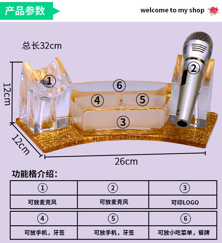 Đế cắm micro pha lê DMPL là sản phẩm của thương hiệu Fuwanghui. Đế được làm bằng Acrylic cao cấp có độ bền cao nên không bị biến dạng khi có lực tác động lên. Do làm từ nguyên liệu chất lượng cao, thiết kế chuyên nghiệp, sản xuất khép kín và phong cách phù hợp với nhiều không gian nên vật dụng này rất được lòng các chủ đầu tư cơ sở karaoke.