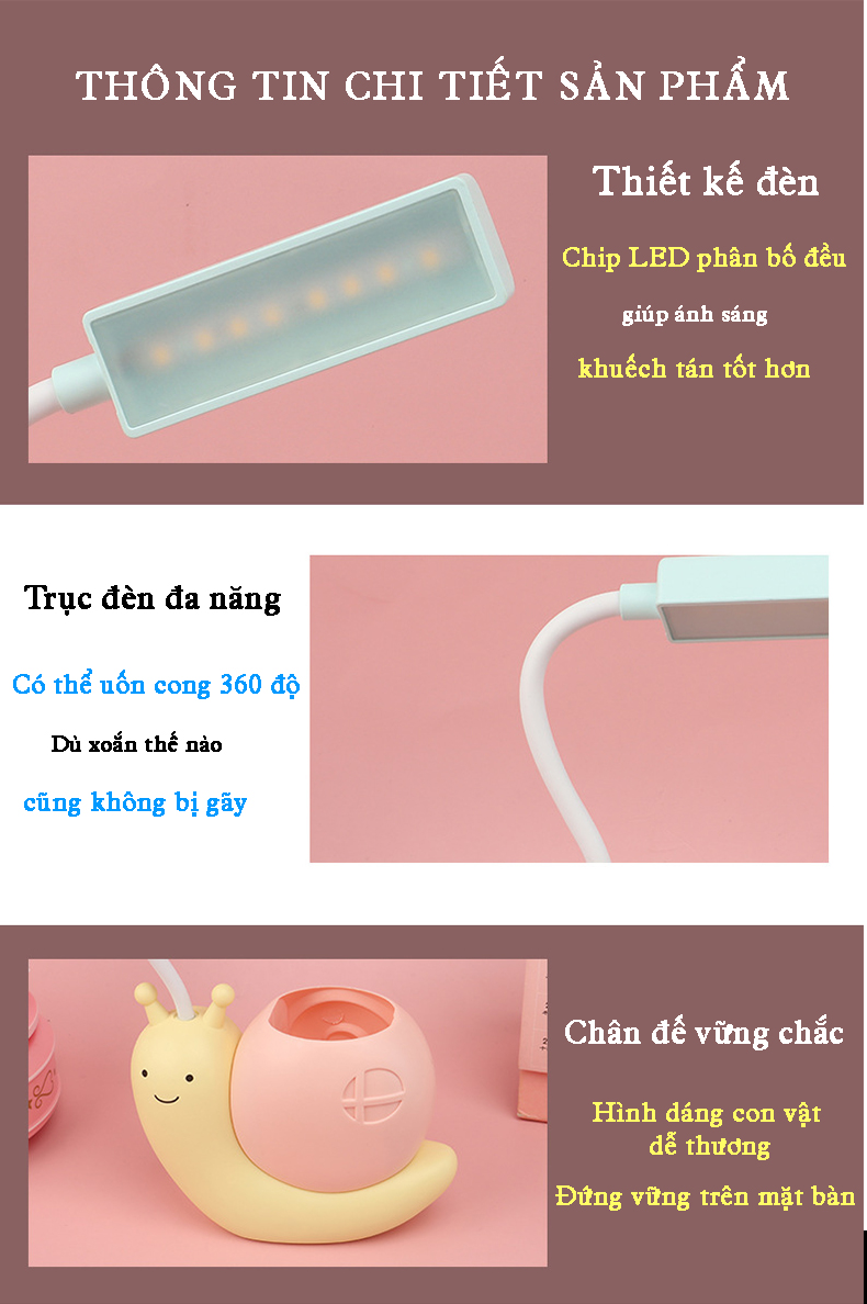 Tên sản phẩm: đèn đọc sách bảo vệ mắt hình ốc sên