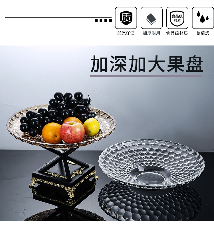Sản phẩm dĩa đựng trái cây CBDE có màu chủ đạo là màu đen, đi kèm với họa tiết màu vàng càng làm tăng thêm sự sang trọng, pha thêm chút cổ điển. Phần đĩa đặt phía trên được làm từ thủy tinh cao cấp, với tính năng chống trầy xước hiệu quả và chịu được lực tác động lớn.