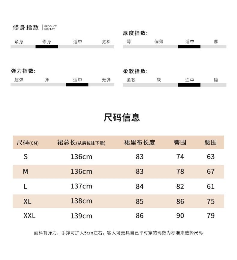 Dưới đây là thông số kích thước váy (Chiều dài váy x Chiều dài lót váy x Vòng hông x Vòng eo) để khách hàng tham khảo: