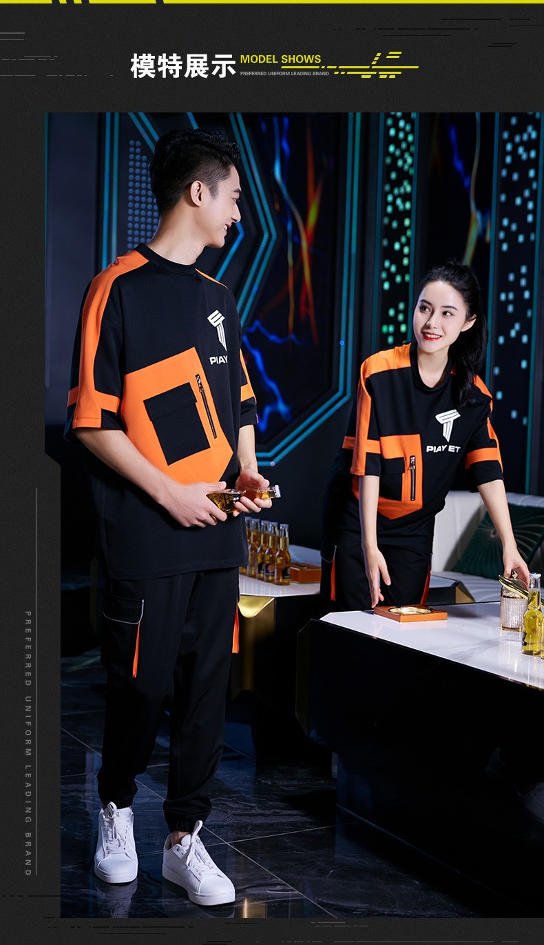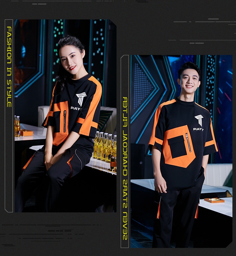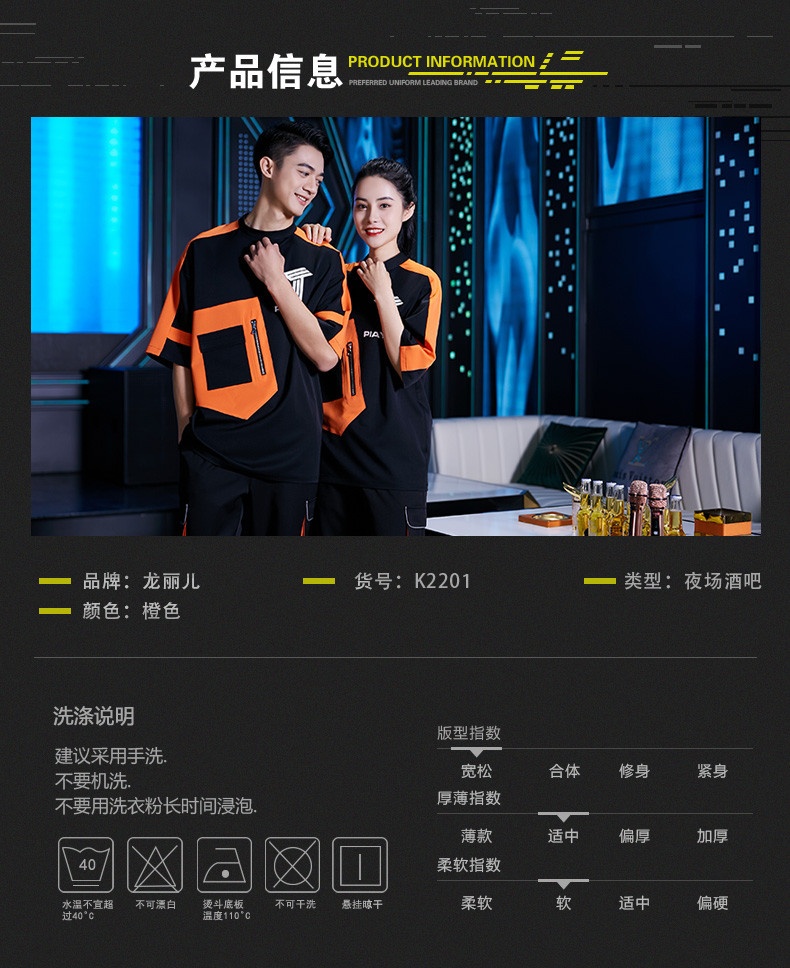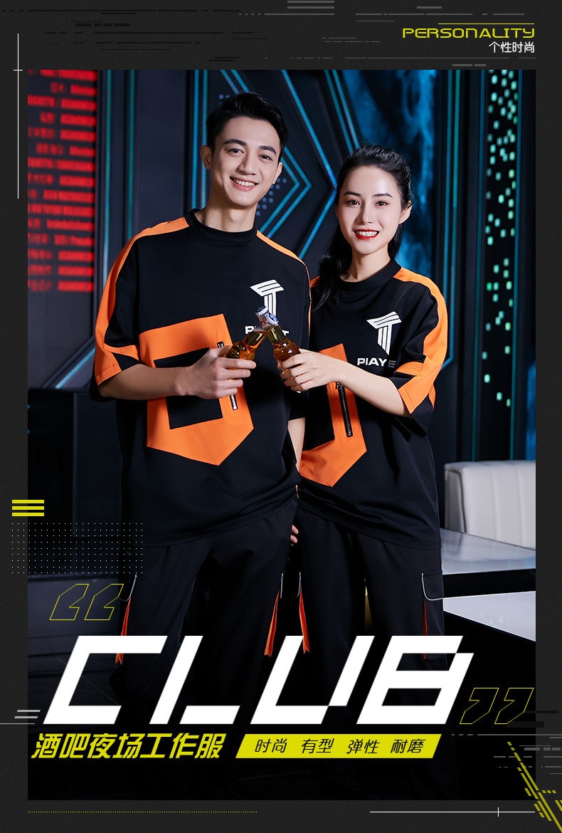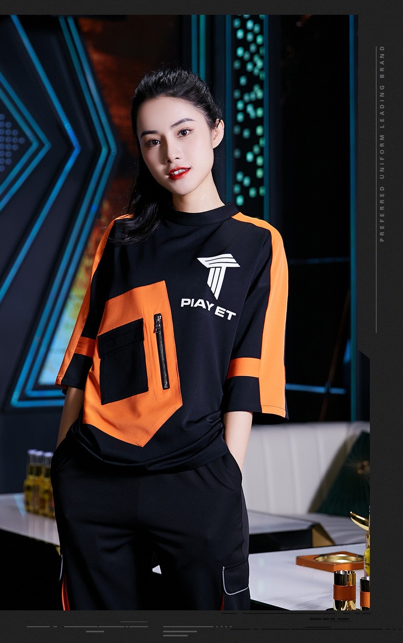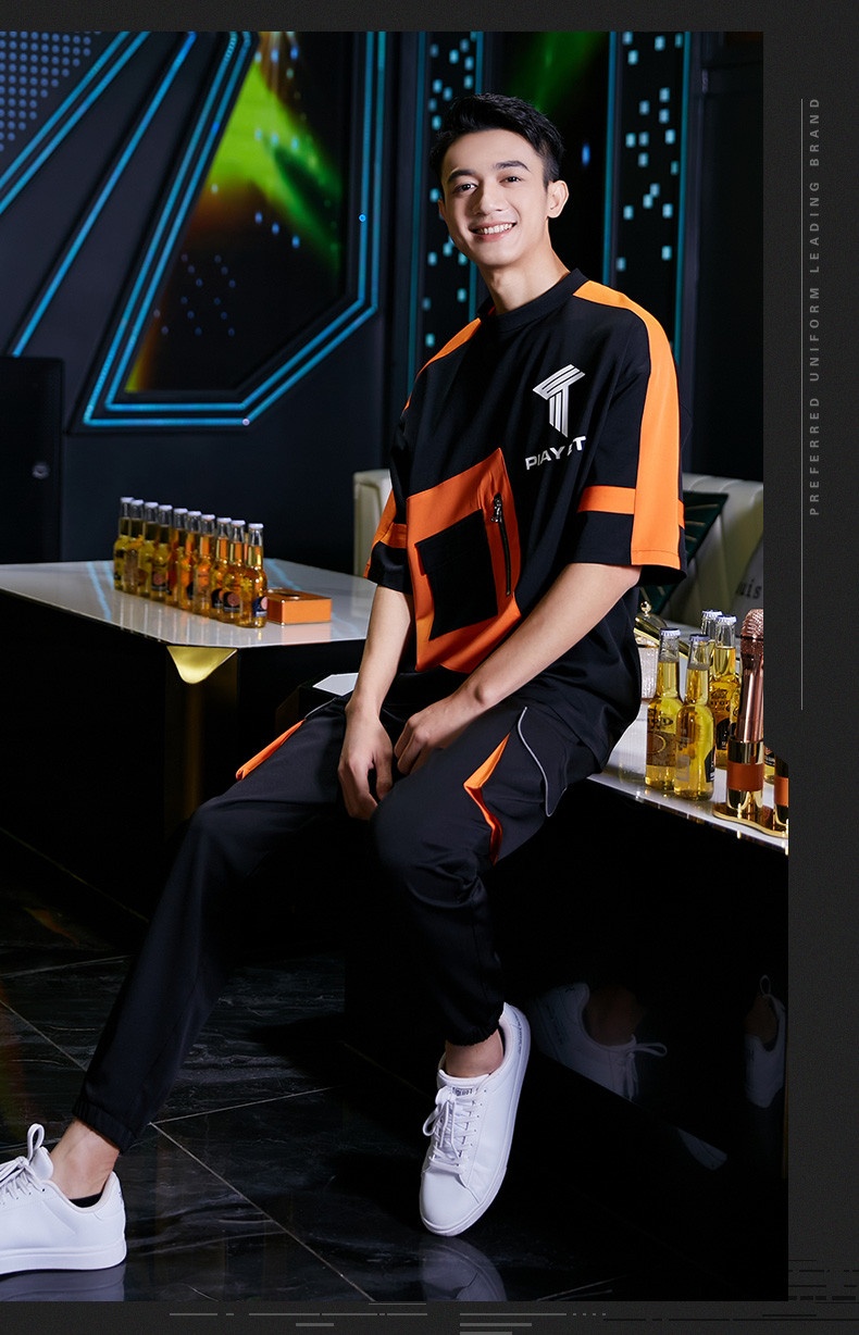 Mẫu DPBS sử dụng hai gam màu chủ đạo là cam và đen giúp người mặc nổi bật trong những không gian tối. Sự phối hợp màu sắc bắt mắt này không hề kén da mà còn giúp khách hàng dễ dàng nhận diện và phân biệt được nhân viên phục vụ.