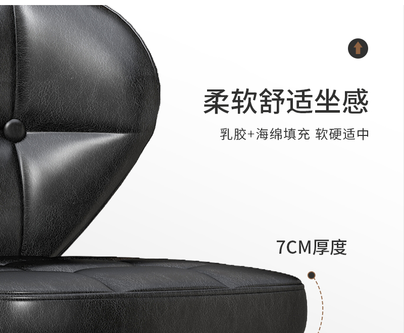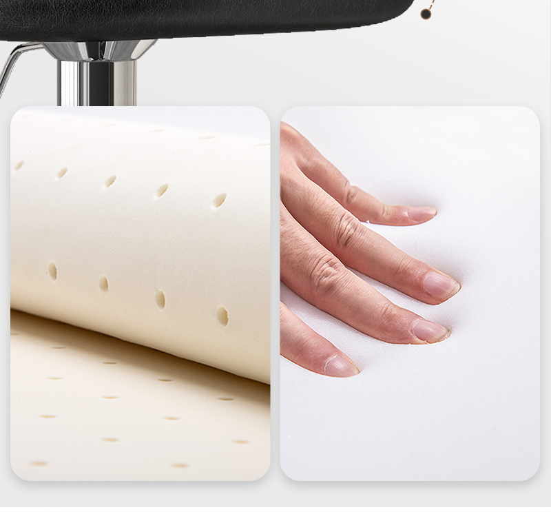 Lớp da có độ bền cao, chống cháy, có thể dễ dàng lau chùi vệ sinh. Phần đệm cao su có độ dày khoảng 7cm, có lỗ thoáng khí tạo cảm giác dễ chịu khi ngồi. Đệm ghế êm, mềm mại, không xẹp lún.