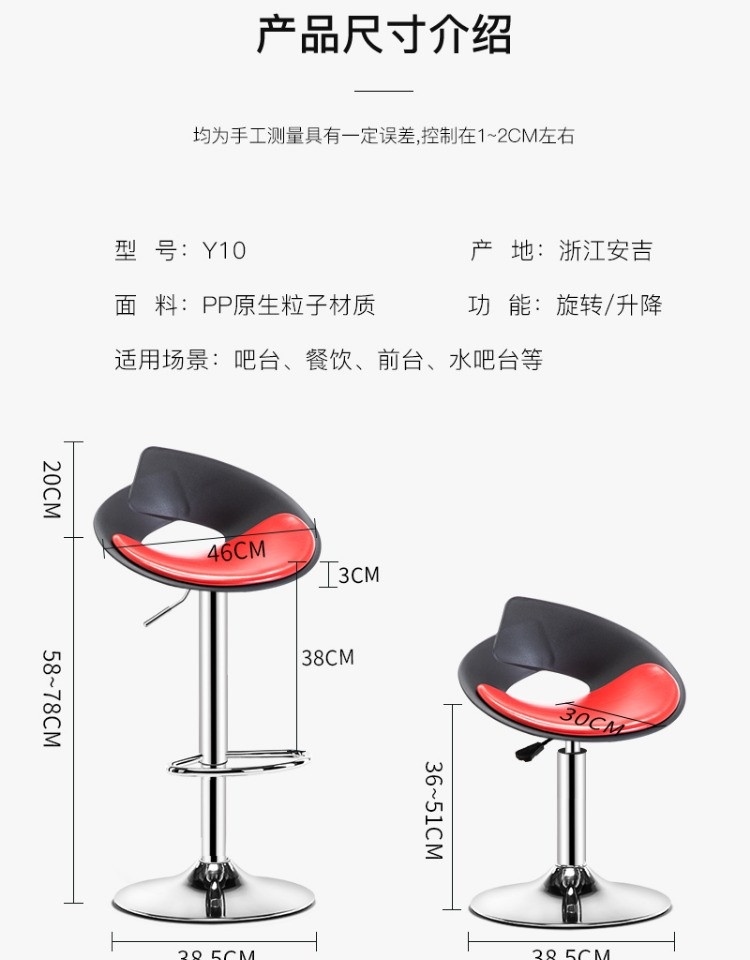 Thông số kỹ thuật ghế quầy bar nhựa giọt nước GQBNGN