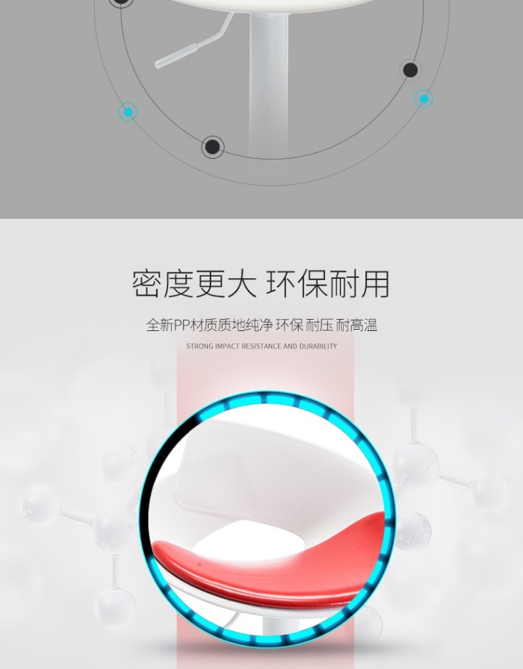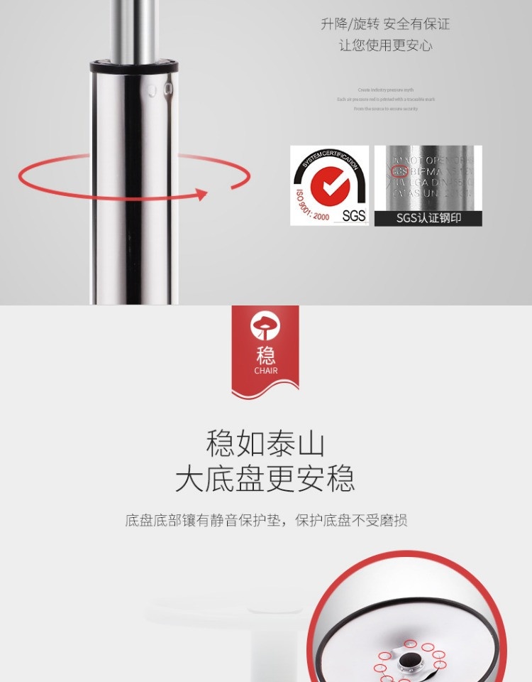 Thân ghế quầy bar nhựa GQBNGN sử dụng ống thép không gỉ có thể chịu lực lớn. Trong quá trình sử dụng không biến dạng cong vênh, không bị bong tróc hoen gỉ. Thanh khí có chứng nhận SGS đảm bảo an toàn. Khi sử dụng dễ dàng thay đổi chiều cao, xoay 360 độ êm ái nhẹ nhàng.
