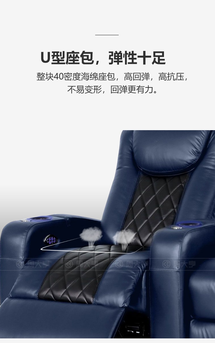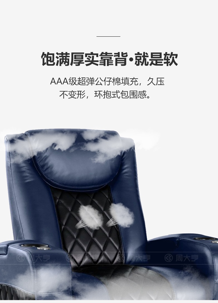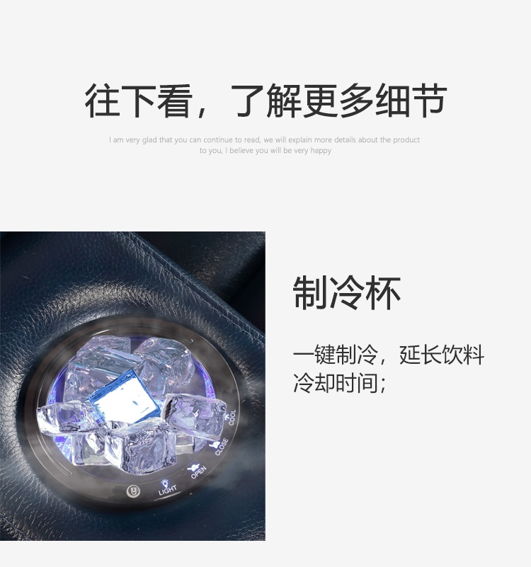 Phía dưới phần tay vịn được thiết kế thêm khung để đồ tiện lợi, cùng với ô làm mát đồ uống chỉ với một thao tác chạm nhẹ. Sản phẩm còn được thiết kế thêm khung đựng ipad và bàn trà có thể tháo rời.