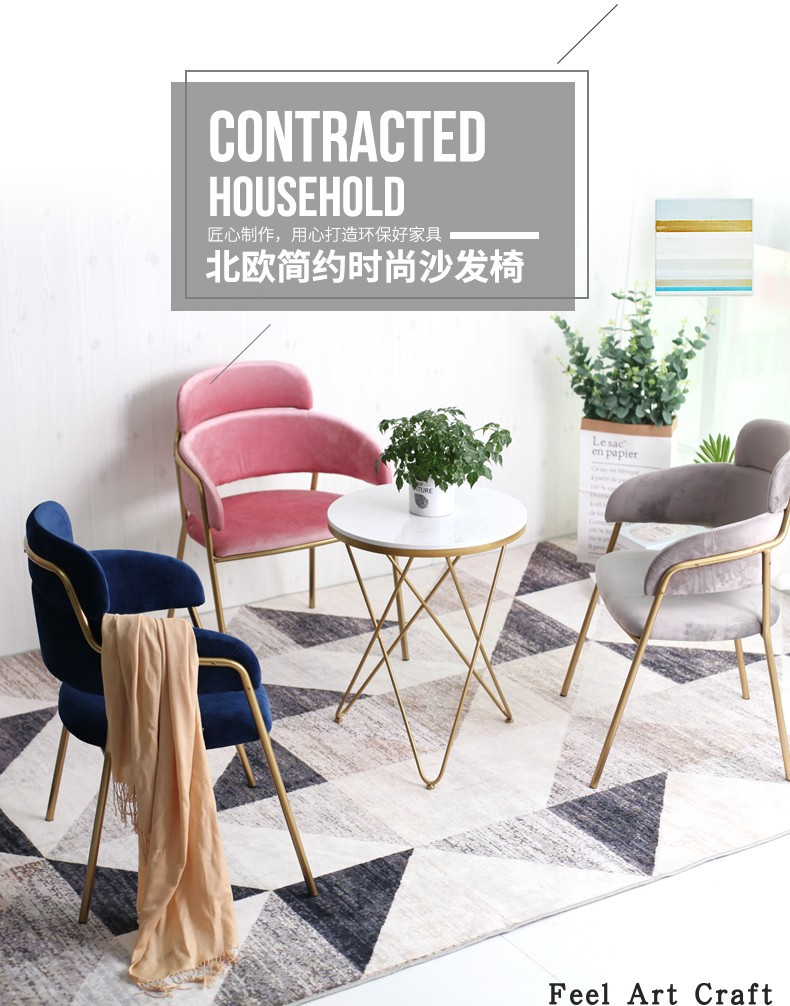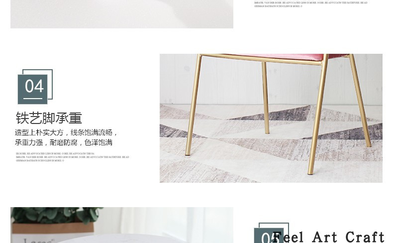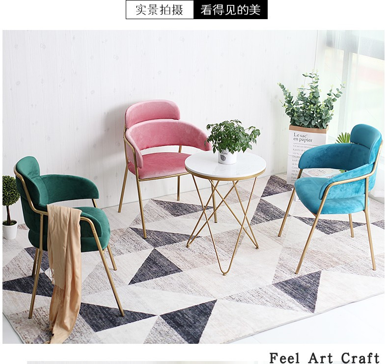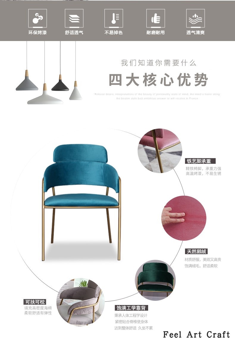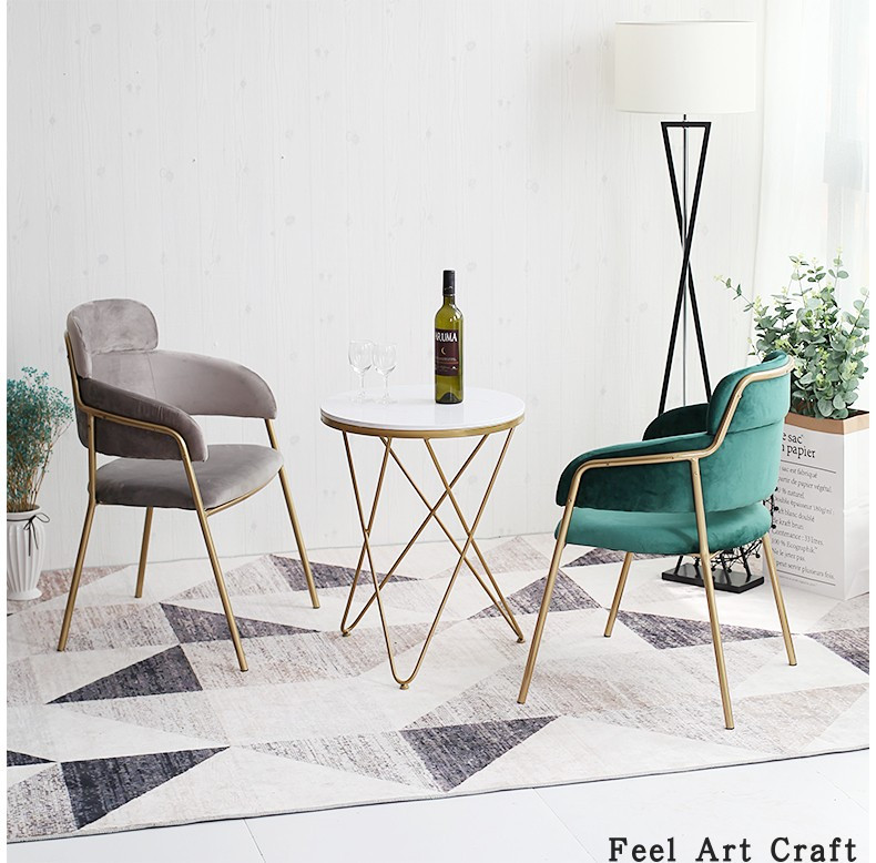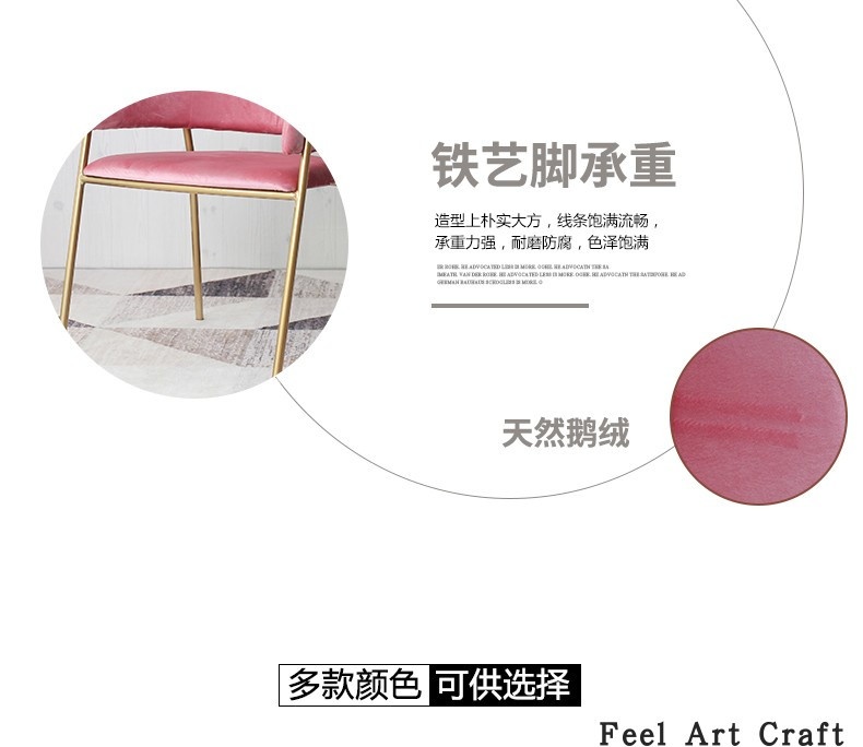 Phần chân ghế sử dụng chất liệu sắt nung ở nhiệt độ cao có khả năng chịu lực và khó rỉ sét. Tựa lưng và đệm ngồi làm từ vải nhung êm ái, thiết kế vừa vặn nên người dùng sẽ cảm giác rất dễ chịu.