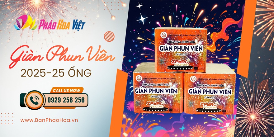 Giàn phun viên 25 ống là lựa chọn hoàn hảo cho những ai muốn biến khoảnh khắc năm mới 2026, lễ hội hay sự kiện riêng tư thành một màn trình diễn ánh sáng rực rỡ, hoành tráng mà vẫn an toàn và đúng pháp luật.