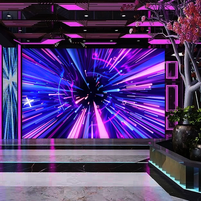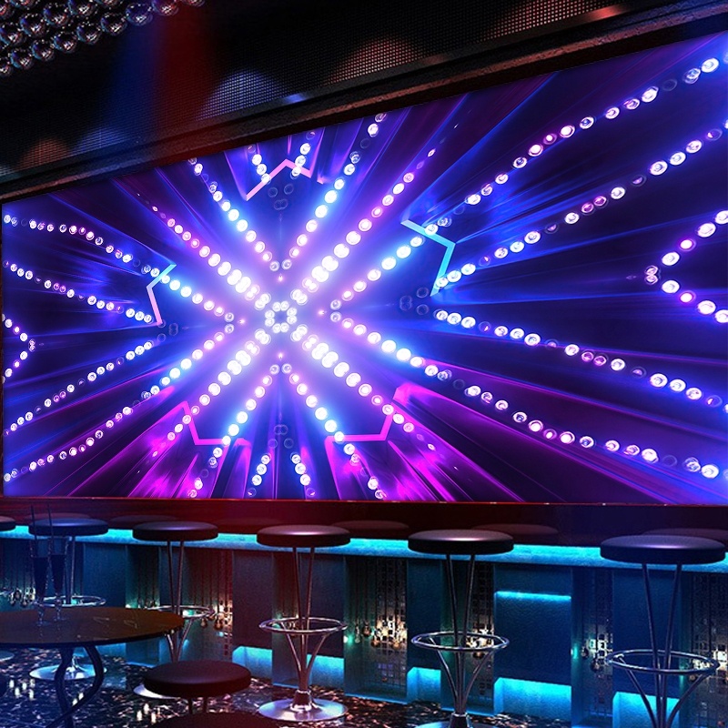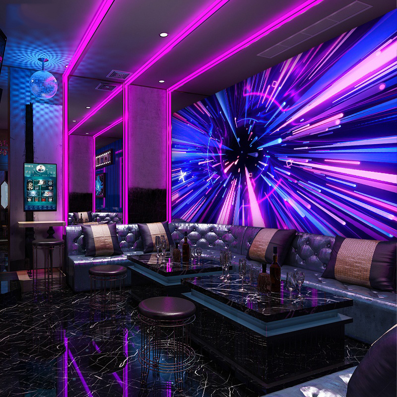 Một phòng karaoke với phong cách hiện đại, cùng hệ thống âm thanh đặc sắc thì không thể thiếu được giấy dán tường ba chiều 3D nhấp nháy GDNN. Với những hình ảnh tia sáng lung tinh tạo cảm giác như đang đứng giữa cánh cửa không gian 3 chiều.