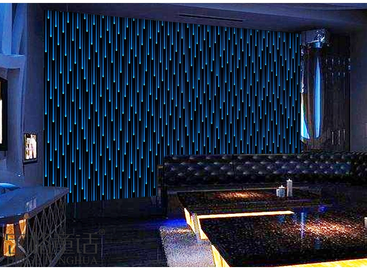 Giấy dán tường 3D GT3D được thiết kế với những hoa văn, đường nét độc đáo. Khi kết hợp với chung đèn LED tại phòng hát sẽ tạo ra không gian huyền bí.