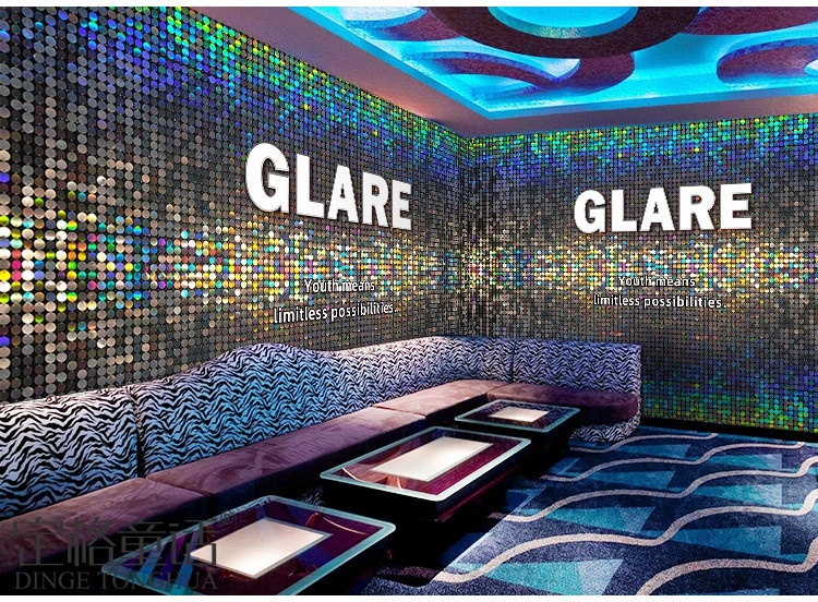 Hiện nay, các không gian quán karaoke hiện đại thay thế những kiểu thiết kế rườm rà, mất nhiều chi phí thi công bằng cách decor giấy dán tường 3D laser đèn flash. Loại vật liệu này không sử dụng đơn giản lại mang đến hiệu ứng lung linh. Đây chắc chắn sẽ là sản phẩm được ưa chuộng trong tương lai.