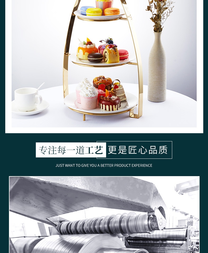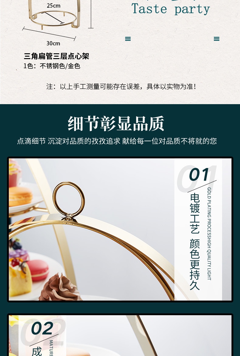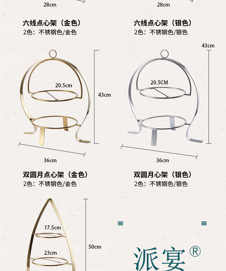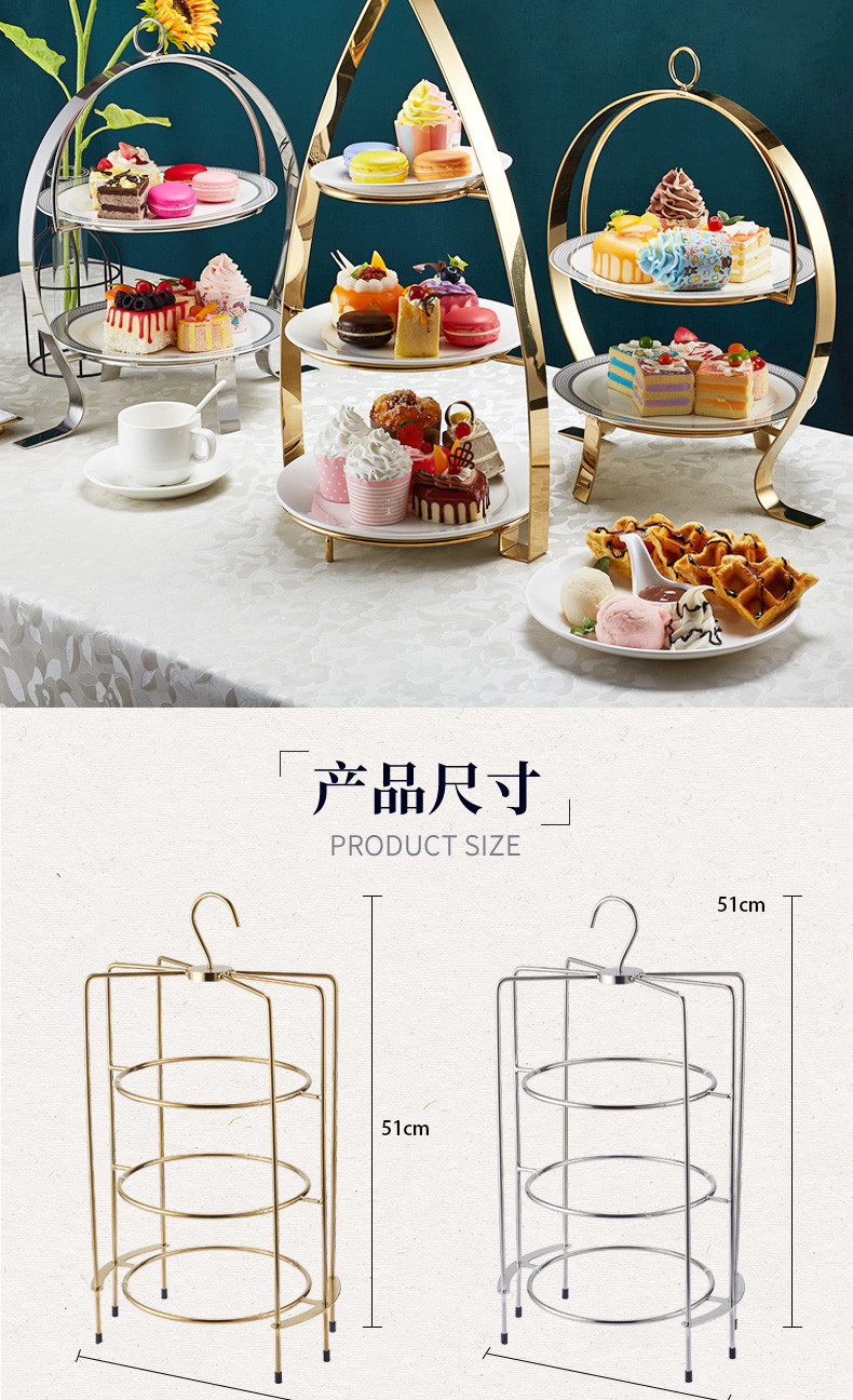 Kích thước: Cao 50cm x Rộng 30cm; Đường kính khay đỡ 25cm, 23cm, 17.5cm