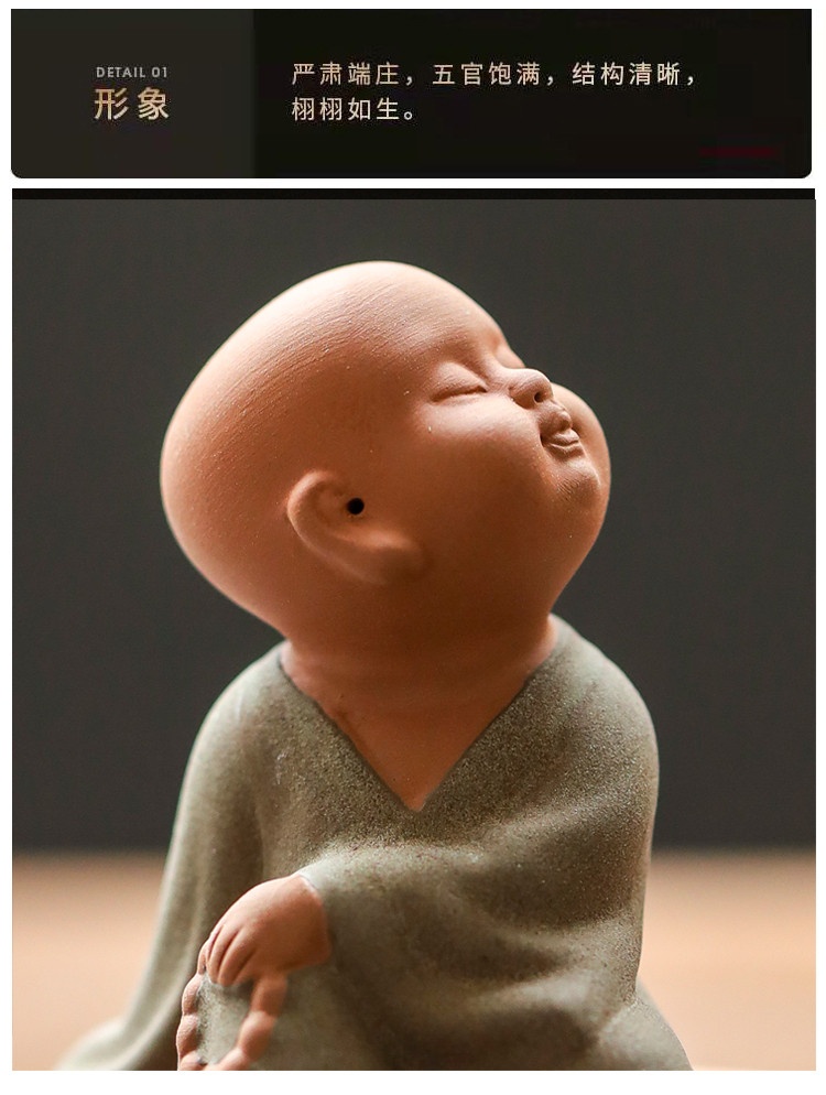 Sản phẩm sử dụng đất khoáng zisha tự nhiên, chạm khắc đa chiều và đem đi nung bằng kỹ thuật nung kép ở nhiệt độ cao nên có độ bền cực tốt. Các tư thế tượng tiểu sư ngồi trong tư thế trang nghiêm được tái hiện lại sống động như thật cho không gian của bạn thêm phần nghệ thuật.