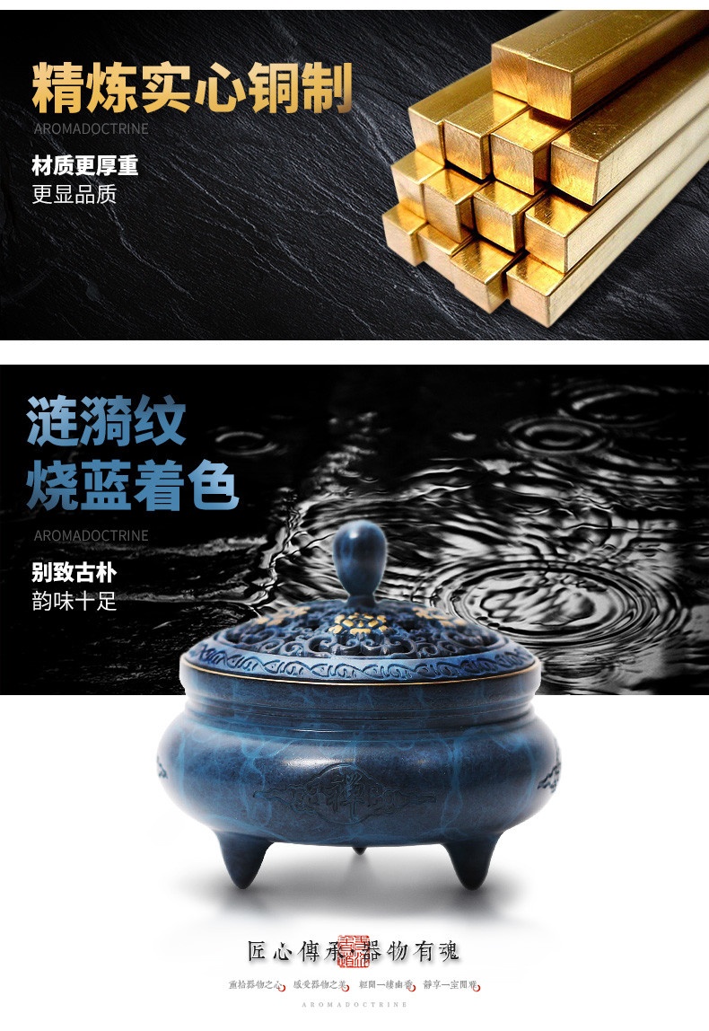 Lư trầm LHXL được chế tác với mẫu mã bắt mắt, hoa văn chạm khắc tinh tế, màu xanh trang nhã không chỉ để xông trầm mà còn là một vật dụng trang trí sang trọng trong nhà. Lư xông trầm bằng đồng rất dễ dàng vệ sinh, không bị hao mòn hay oxy hóa, bề mặt luôn sáng bóng và càng dùng lâu nước đồng càng đẹp.