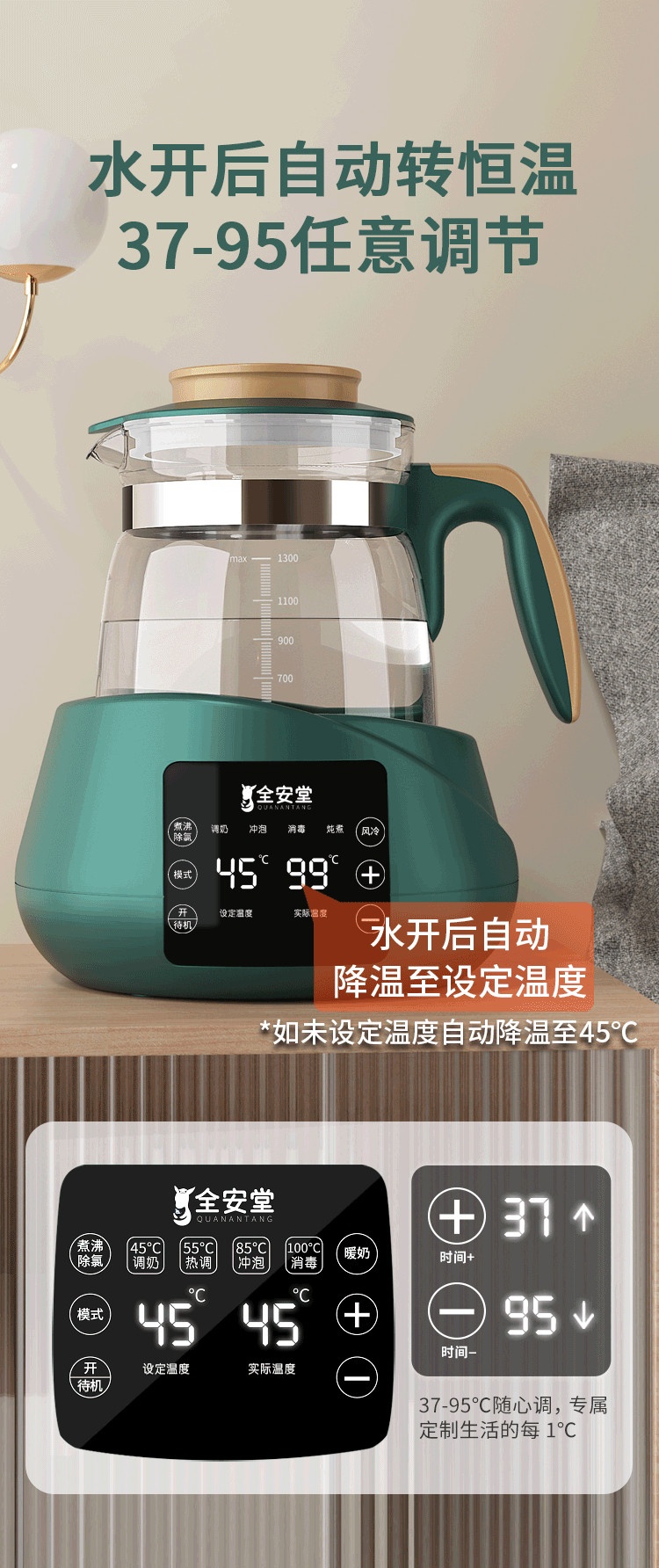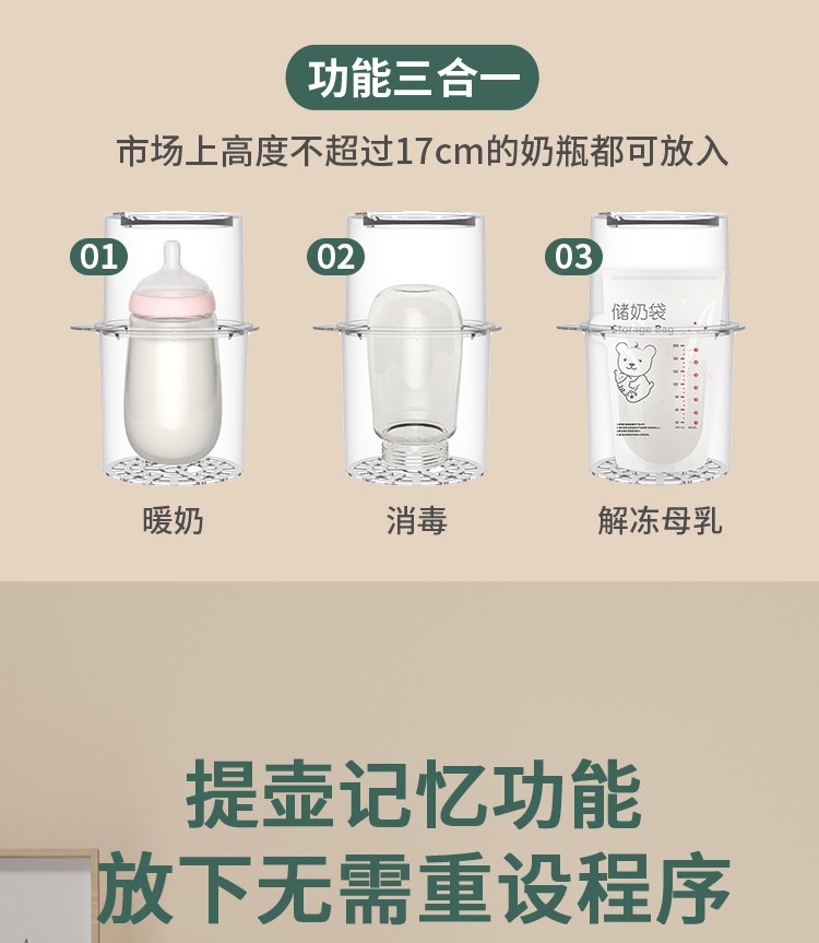 Máy có khả năng tự động điều chỉnh nhiệt độ sữa, hâm nóng nên mẹ sẽ có nhiều thời gian rảnh tay chơi với bé hơn. Sản phẩm tích hợp đồng thời nhiều chức năng gồm: đun sôi, giữ ấm, điều chỉnh nhiệt độ sữa, khử clo, khử trùng, giã đông… Nước/Sữa sau khi được đun sôi sẽ tự động chuyển sang mức nhiệt độ cố định, người dùng có thể tùy ý điều chỉnh ở mức nhiệt 37 - 95 độ C.