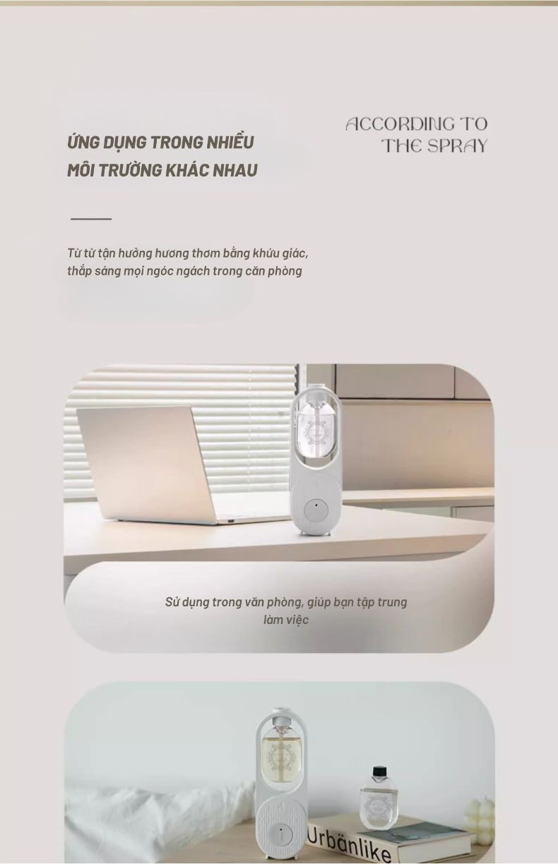 - TUYỆT ĐỐI không được đặt máy xịt phòng nằm hoặc nghiêng sau khi đã lắp lọ nước hoa sẽ dẫn tới hỏng máy
