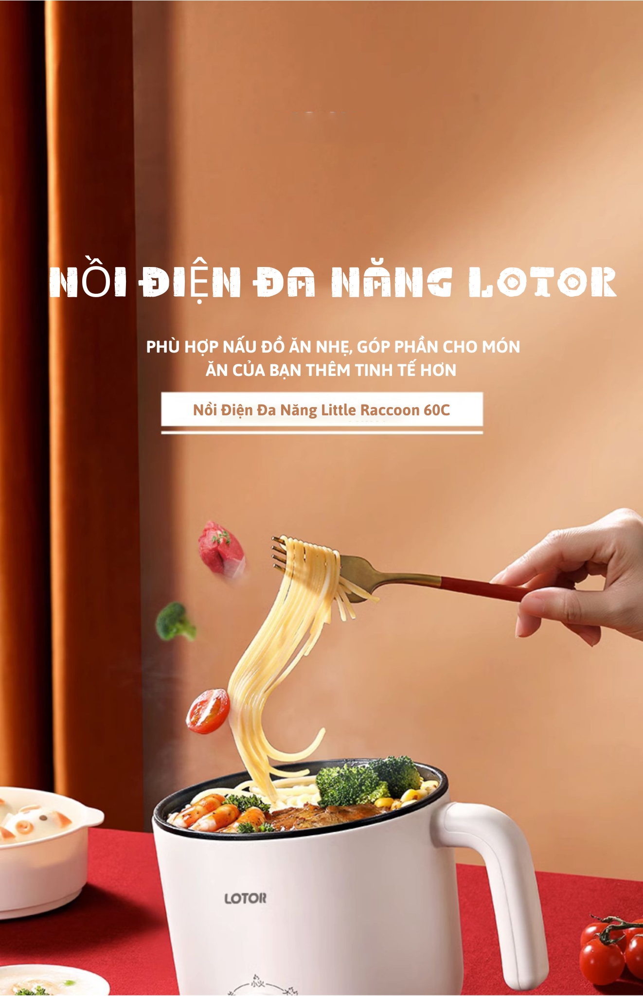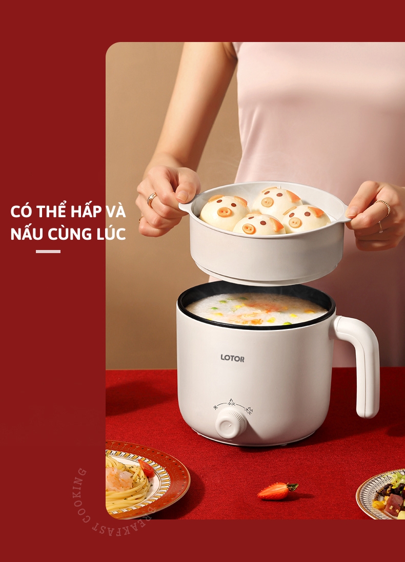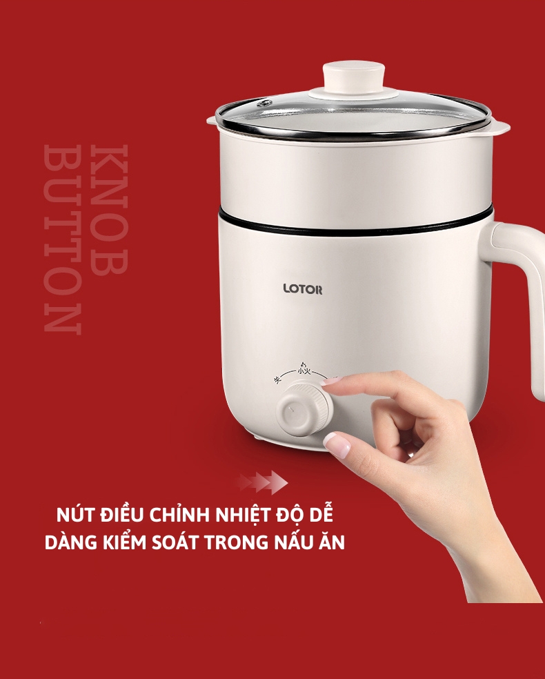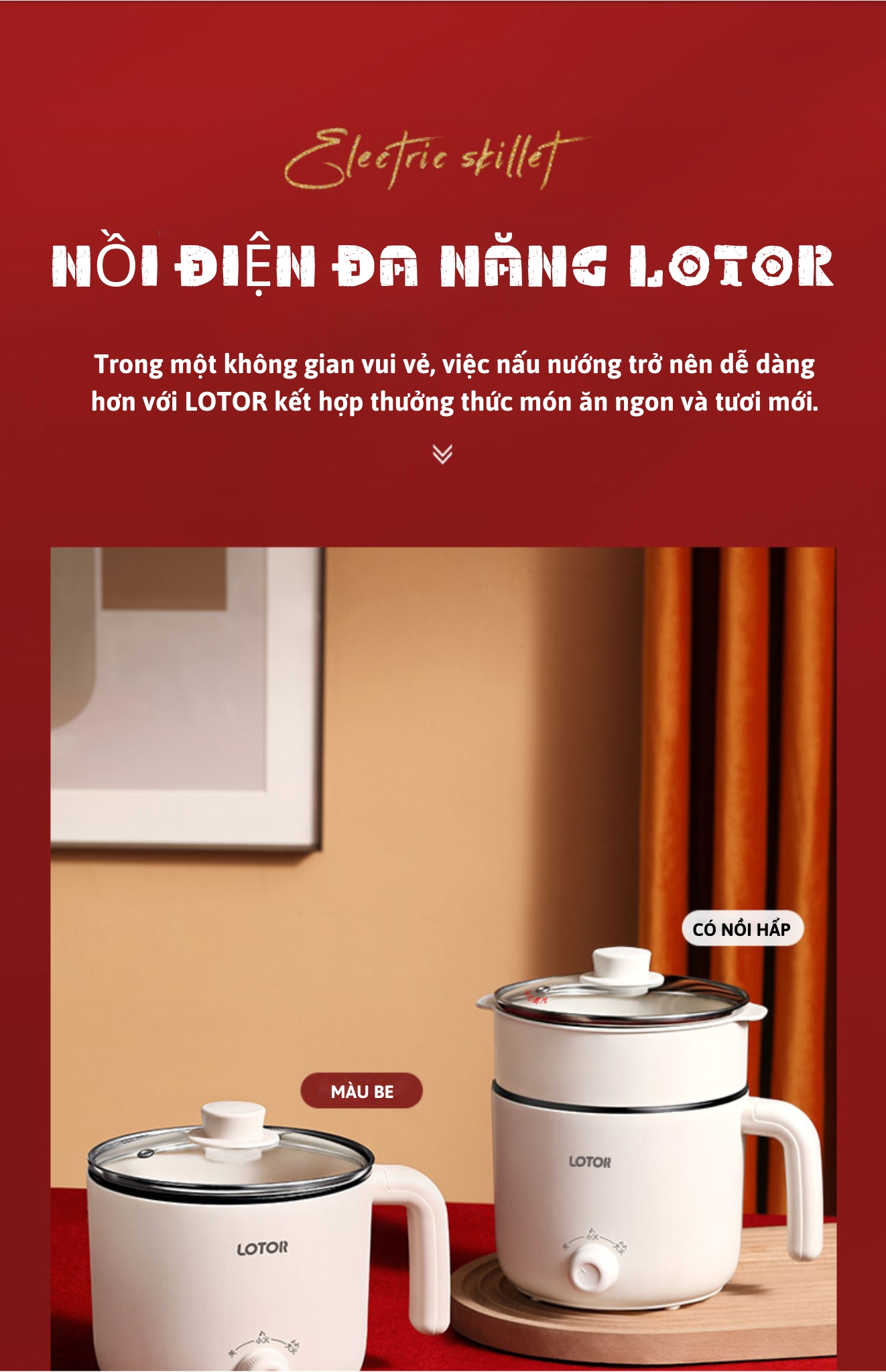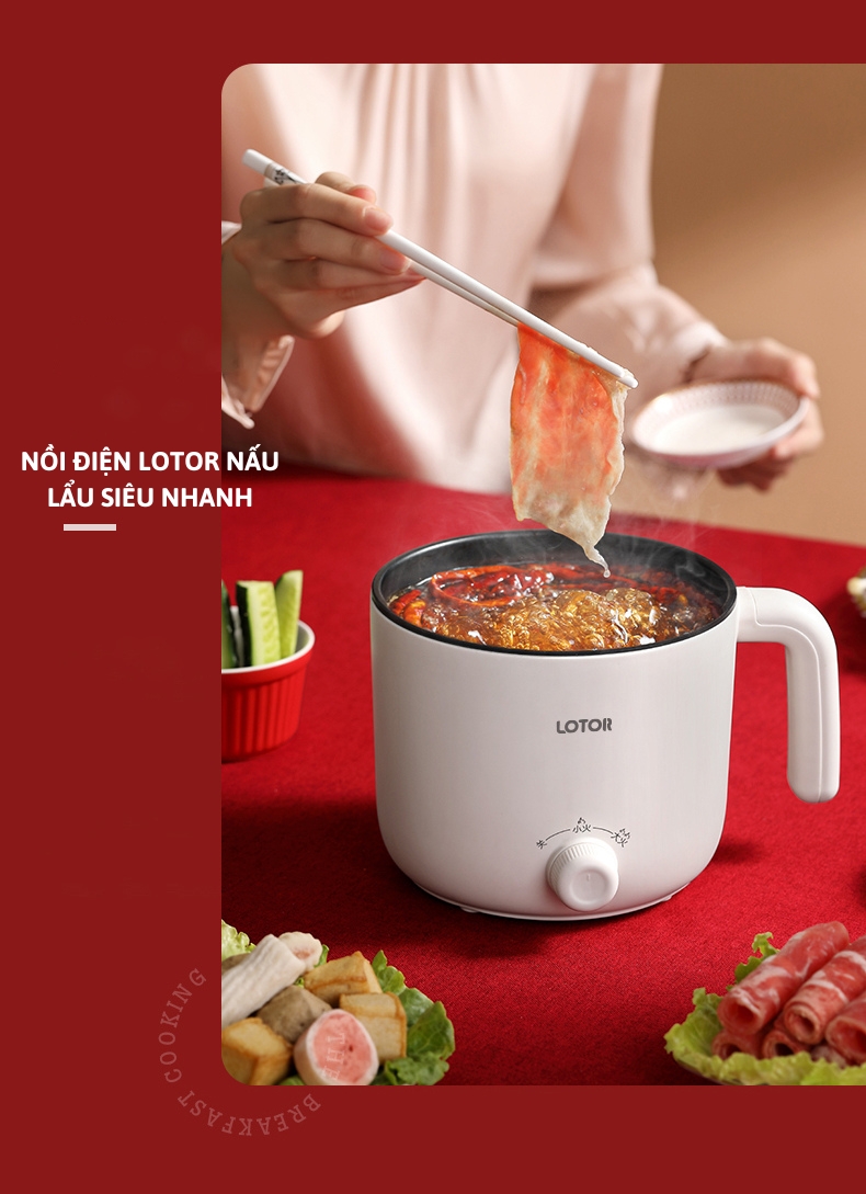 Sản phẩm nồi điện đa năng Lotor vừa có khả năng giúp bạn tiết kiệm thời gian công sức, vừa giúp bạn tiết kiệm nhiên liệu tối đa. Có thể dùng để nấu lẩu, nấu canh chỉnh lửa nhỏ hoặc to tùy ý và rất an toàn vì có thiết bị điều chỉnh nhiệt. Với phụ kiện xửng hấp bạn có thể hấp trứng và bánh trong vòng 5 phút là có thể có món ăn ngon, lại giàu dinh dưỡng, tiết kiệm được thời gian tối đa. Chế biến những món ăn ngon trong thời gian ngắn nhất, là sản phẩm tiện dụng không thể thiếu trong gia đình, văn phòng, các bạn học sinh, sinh viên…