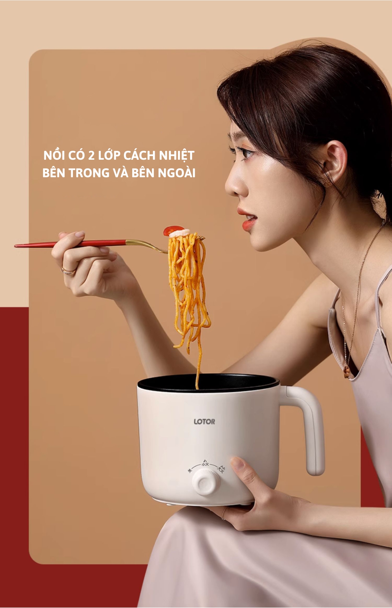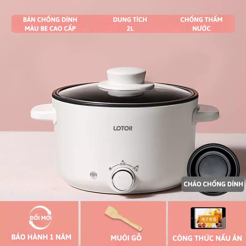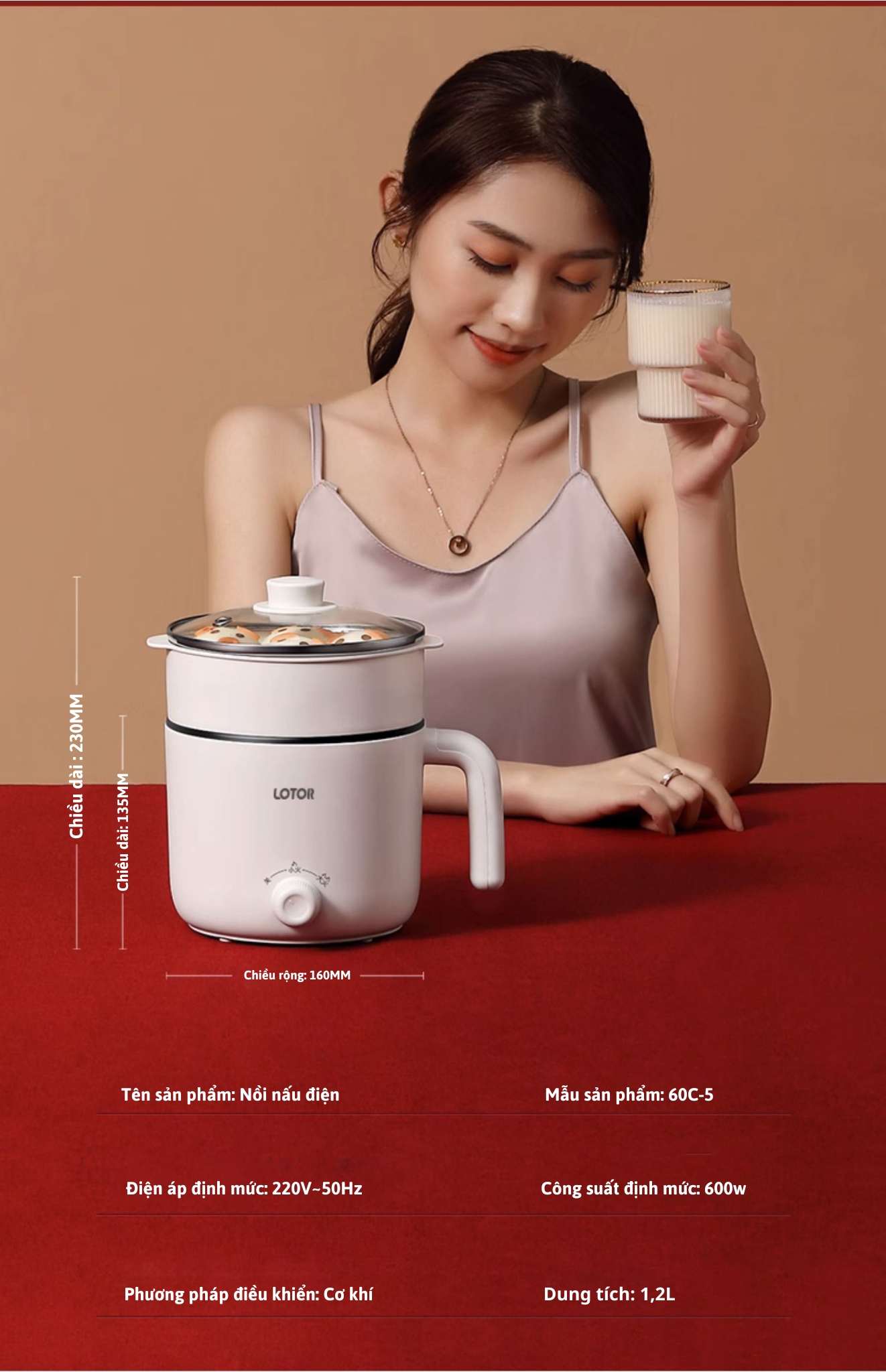 Nồi điện đa năng Lotor dung tích là 1.2L có thể nấu cho 1-3 người.