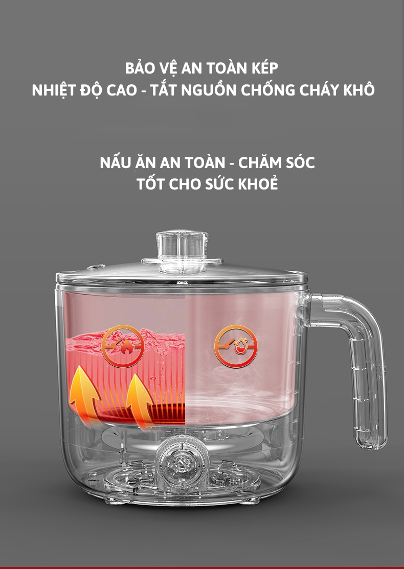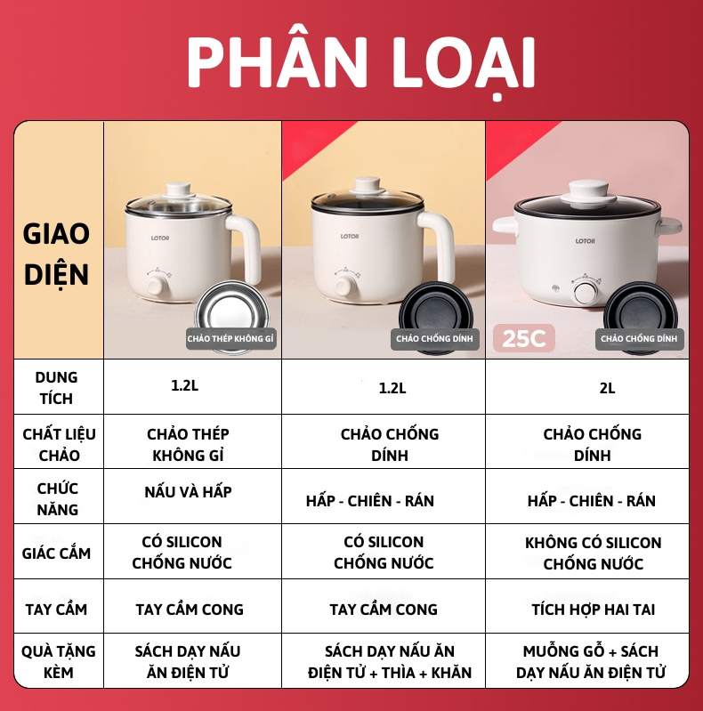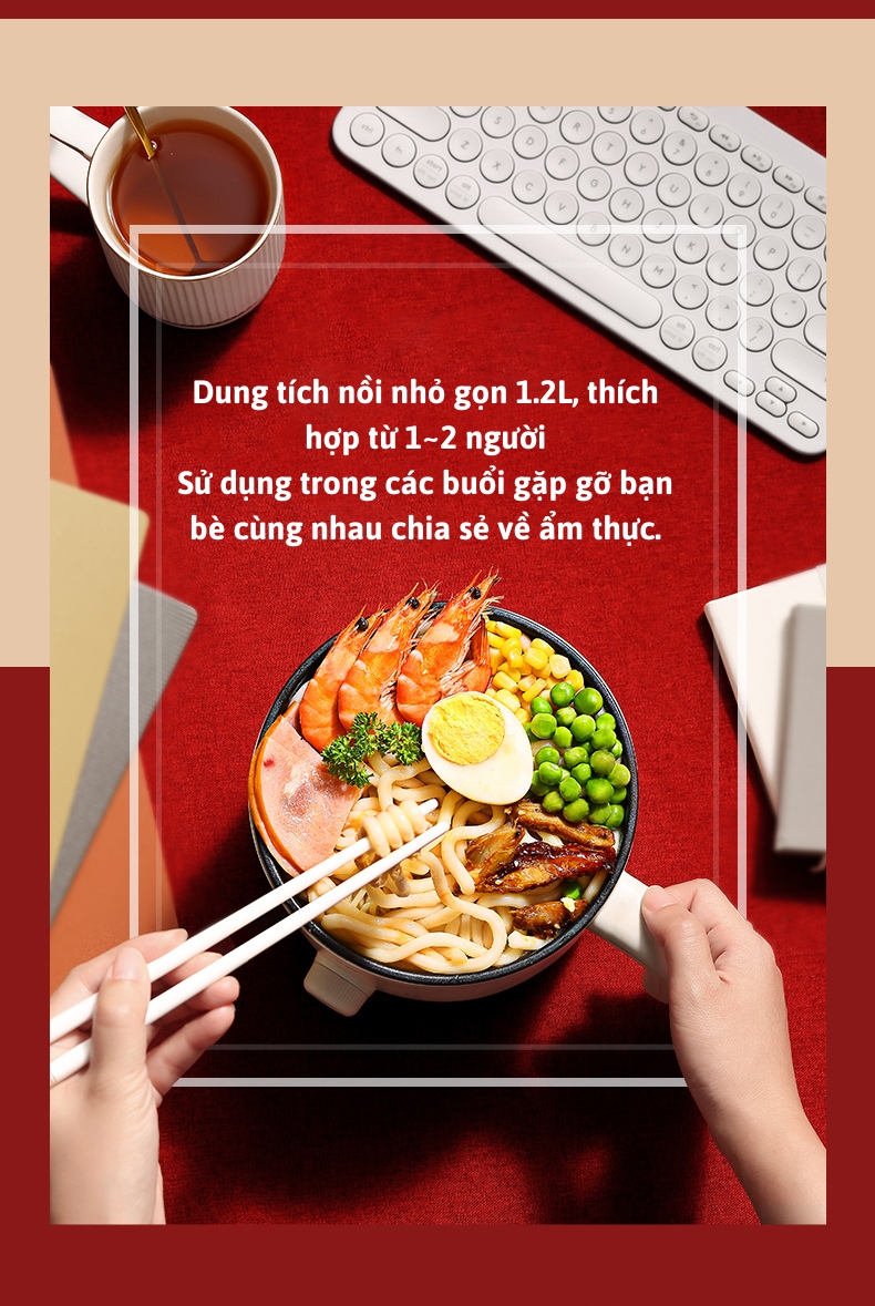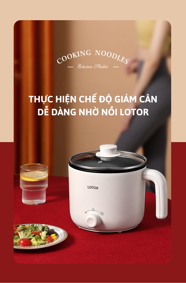 Nồi điện đa năng Lotor dung tích là 1.2L có thể nấu cho 1-3 người.
