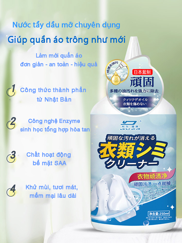 Tiện lợi và nhanh chóng: Nước tẩy vết dầu mỡ đi kèm với hướng dẫn sử dụng đơn giản. Người dùng có thể dễ dàng xử lý các vết bẩn một cách hiệu quả mà không cần nhiều thời gian và công sức.