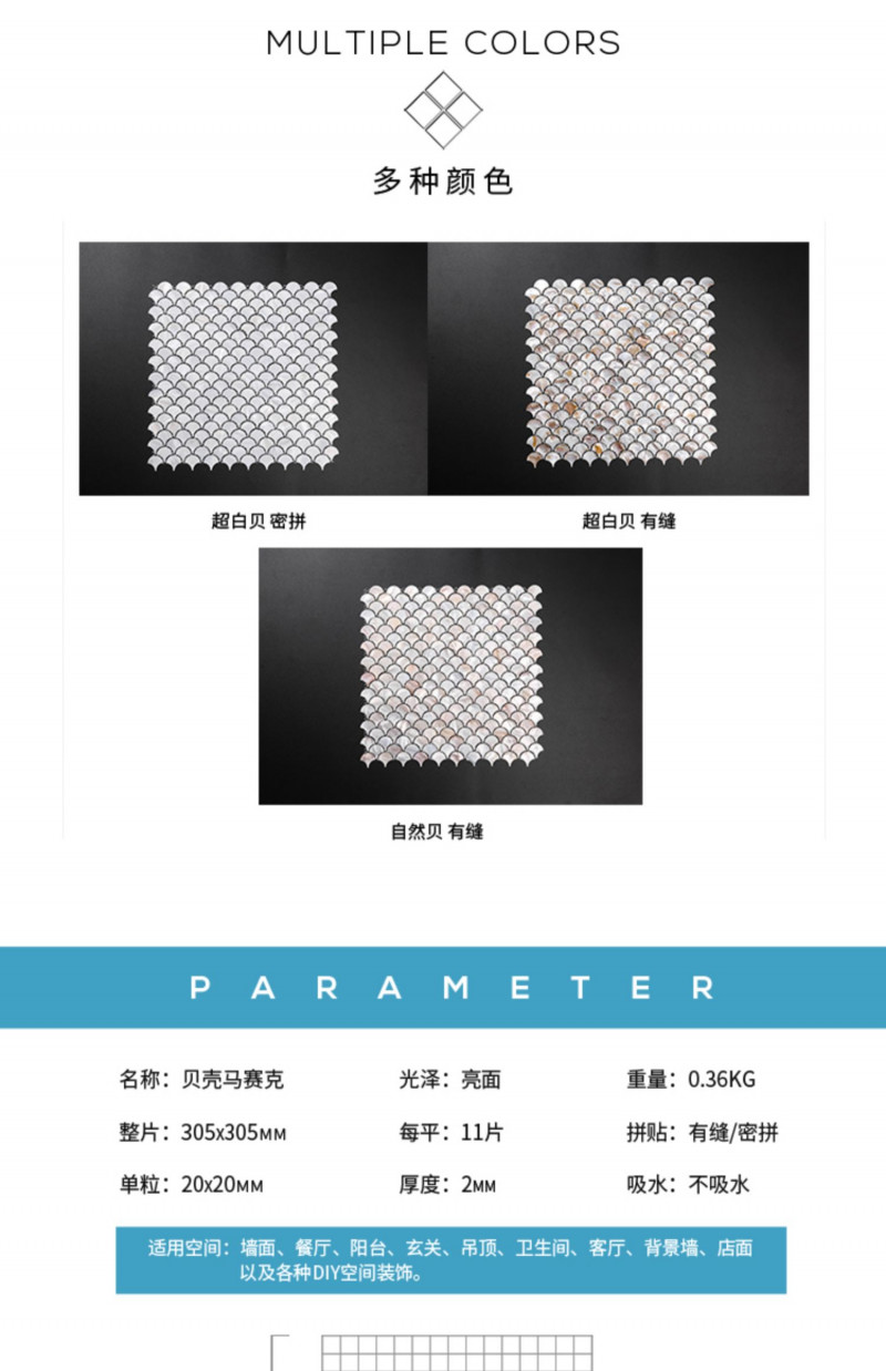 Thông số kỹ thuật của tấm ốp khảm trai hình vảy cá GKV