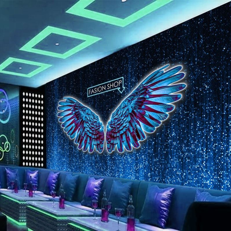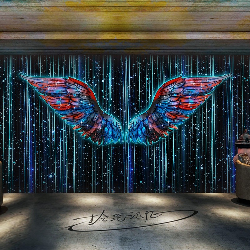 Tranh dán tường 3D đôi cánh thiên thần TDTT giúp tạo dấu ấn khó quên đối với những khách hàng ghé thăm quán: