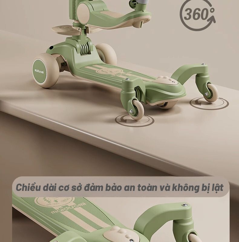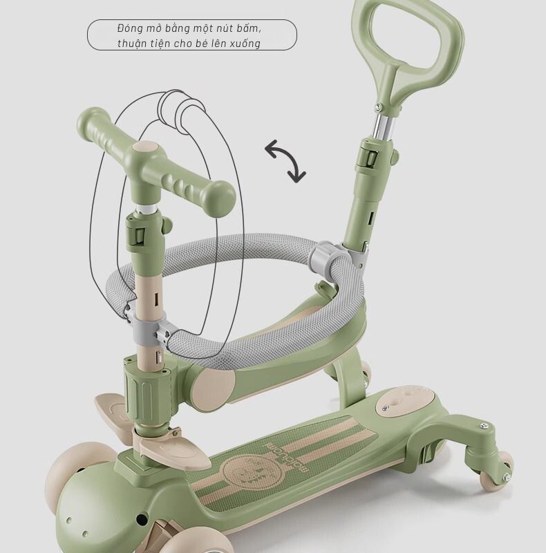 Chế độ bập bênh: Không chỉ là một chiếc xe trượt Scooter thông thường, sản phẩm này còn có khả năng biến thành chiếc bập bênh vui nhộn. Sau những giờ chơi đầy năng lượng với xe trượt ngoài trời, bố mẹ có thể dễ dàng biến nó thành một chiếc bập bênh, giúp bé thỏa sức vui đùa và khám phá thế giới xung quanh.