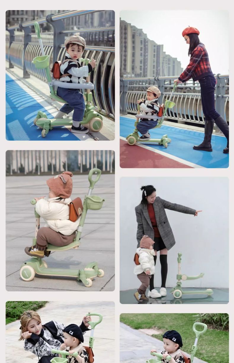 Chế độ xe trượt scooter ngồi: Đây là chế độ thích hợp cho các bé đang trong giai đoạn tập đi hoặc đang còn nhỏ và chưa thể đứng vững. Bố mẹ có thể đặt bé ngồi lên phần yên của xe trượt và dùng tay đẩy hoặc bé có thể tự đẩy bằng chân. Chế độ này giúp bé tập đi và cảm thấy thoải mái trong quá trình học cùng với sự hỗ trợ từ bố mẹ.