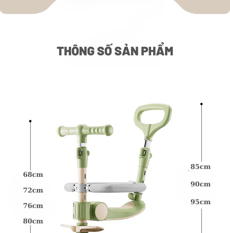 Đa năng với 3 tính năng trong 1: Sản phẩm này có khả năng linh hoạt chuyển đổi giữa 3 tính năng khác nhau: xe trượt ngồi, bập bênh và xe trượt đứng. Điều này giúp bé có sự lựa chọn phù hợp với giai đoạn phát triển cụ thể và mang lại trải nghiệm đa dạng và thú vị.