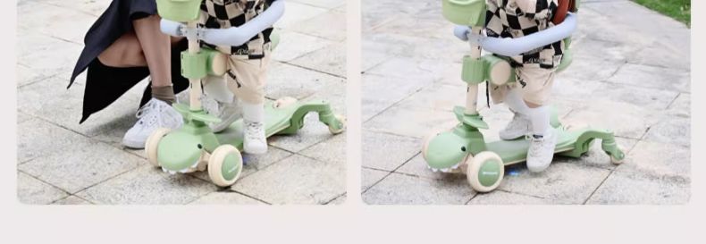 Chế độ xe trượt scooter đứng: Bằng một thao tác đơn giản, bố mẹ có thể biến xe trượt Scooter thành một chiếc xe đẩy đứng. Việc tháo phần yên và điều chỉnh tay cầm độ cao giúp bé có thể đứng vững trên xe và di chuyển một cách linh hoạt. Hệ thống phanh ở phía sau đảm bảo an toàn khi bé di chuyển và có thể dễ dàng phanh lại chỉ bằng cách đạp nhẹ.